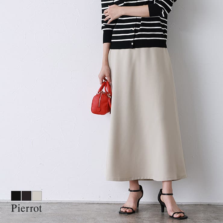 きれいなシルエットが魅力“2丈フレアスカート”滑らかで落ち感のある風合いが、大人な雰囲気に仕上げてくれます。 程良く厚みがあり透けにくいところも魅力です。 裾に向かってなだらかに広がるフレアシルエットがきれいなスカート。 広がりすぎないフレア分量が、しなやかで女性らしいスタイリングに仕上げてくれます。 合わせるアイテムや選ぶ丈次第で、きれいめにもカジュアルにも着回せる優秀アイテムです。 ※商品画像は着用イメージです。 光や角度により、実物と色味が異なる場合がございます。 また表示のサイズ感も実物とは若干異なる場合もございますので、予めご了承ください。 【お買い物を楽しむための方法】**商品のお気に入り登録**カートボタン横のハートをクリック!気になるアイテムがお得になると通知が届きます。 チャンスをのがしません♪**ブランドのお気に入り登録**ブランドトップページの「お気に入りに追加」をクリック!新商品の情報を受け取ることができます。 【ブランド】Pierrot(ピエロ)【スペック】■サイズ ミドル丈M/ミドル丈L/ロング丈M/ロング丈L■実寸(約cm)【身丈/ウエスト/ヒップ/裾幅】ミドル丈M:80/32/48/87ミドル丈L:82/34/50/89ロング丈M:90/32/48/87ロング丈L:92/34/50/89※実寸(平置きした状態でメジャー計測)の為、タグ表記のサイズとは異なります。 ■素材ポリエステル95%/ポリウレタン5% ■洗濯表示液温は40℃を限度とし、手洗いができる塩素系及び酸素系漂白剤の使用禁止タンブル乾燥禁止底面温度150℃を限度としてアイロン仕上げができる(あて布使用)石油系溶剤によるドライクリーニングができる■備考透け感(淡色):若干あり透け感(濃色):なし伸縮性:なし裏地:なしポケット:なしファスナー:あり■ご注意・生地のカッティングにより画像と異なる場合がございます。 同商品、同色におきましても色(染料)やロットによって伸縮性・伸び率、裁断上ずれなどが生じてしまう現象があります。 また、プリント加工の際に、インク飛びが目立ってしまう場合がございますが、手法上致し方ない現象となりますので、なにとぞご了承くださいませ。 ・同生産時期でも、色、サイズ、デザイン、素材の質感が多少異なる場合がございます。 サイズ詳細などの測り方はスタッフ間で統一、徹底はしておりますが、若干の誤差(約2〜3cm誤差)がある場合がございます。 また、ニット製品は生産の過程上「生地を織る際の糸の継ぎ目」繊維の「混紡」、プレス加工、製品洗い加工によって形やサイズ(5cm前後)に誤差が生じる場合がございますが品質上の問題はございません。 返品・交換について購入後の交換は受け付けておりません。 予めご了承ください。 返品を希望される場合は購入履歴一覧の「ショップへの問い合わせ」よりお問い合わせください。 =========================複数配送先指定について1件の注文に対して、異なる住所への配送は対応出来かねます。 恐れ入りますが、異なる住所へ配送をご希望の場合、配送先毎に分けて注文いただきますようお願い申し上げます。 【スカートWOMEN】ブラック ブラウン ライトグレージュ ダークブルーグリーン ライトブルー ミドル丈/M ミドル丈/L ロング丈/M ロング丈/L 【10%OFFクーポン!2/10(火)1:59まで】Pierrot 2丈フレアスカート ☆ スカート フレアスカート 選べる ミドル丈 ロング丈 シンプル 着回し きれいめ 上品 オフィスカジュアル フェミニン 黒 レディース Pierrot ピエロ ス 3,031 ~