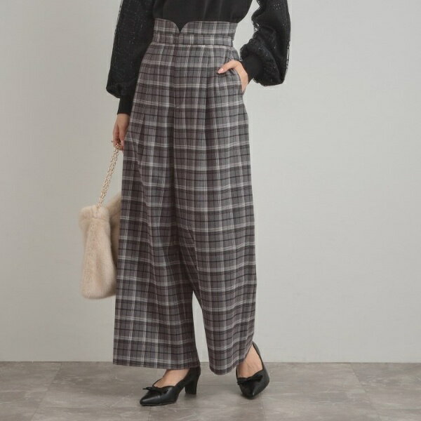 【大人可愛い】起毛先染めチェック柄 スカラウエスト ワイドパンツ/クチュールブローチ(Couture Brooch) 3,494 ~