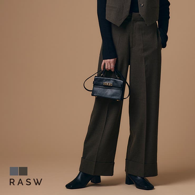 滑らかな肌触りと表情のある杢の風合いが高級感溢れる素材。 程良いハリ感が綺麗なシルエットを作り出します。 ウール特有の光沢感が上品な印象へと導きます。 メンズライクなダブル仕様がポイントのワイドパンツ。 すとんと落ちるシルエットが脚のラインを拾いにくく、太ベルトのハイウエストデザインでスタイルアップ効果も◎センタープレスですっきりとした印象へと導きます。 ※商品画像は着用イメージです。 光や角度により、実物と色味が異なる場合がございます。 また表示のサイズ感も実物とは若干異なる場合もございますので、予めご了承ください。 【お買い物を楽しむための方法】**商品のお気に入り登録**カートボタン横のハートをクリック!気になるアイテムがお得になると通知が届きます。 チャンスをのがしません♪**ブランドのお気に入り登録**ブランドトップページの「お気に入りに追加」をクリック!新商品の情報を受け取ることができます。 【ブランド】RASW(ラス)【スペック】■サイズ S/M/L■実寸(約cm)【ウエスト/ヒップ/前股上/後股上/股下/ワタリ幅/裾幅】S:32/48/33.5/41.5/66/31.5/27.5M:34/50/35.5/42/69/32.5/28L:36/52/37.5/42.5/71/33.5/28.5※実寸(平置きした状態でメジャー計測)の為、タグ表記のサイズとは異なります。 ■素材ポリエステル54%/レーヨン24%/ウール20%/ポリウレタン2%[裏地]ポリエステル100%■洗濯表示液温は40℃を限度とし、手洗いができる塩素系及び酸素系漂白剤の使用禁止タンブル乾燥禁止底面温度150℃を限度としてアイロン仕上げができる(あて布使用)石油系溶剤によるドライクリーニングができる■備考透け感:なし伸縮性:なし裏地:ありポケット:ありファスナー:あり■ご注意・生地のカッティングにより画像と異なる場合がございます。 同商品、同色におきましても色(染料)やロットによって伸縮性・伸び率、裁断上ずれなどが生じてしまう現象があります。 また、プリント加工の際に、インク飛びが目立ってしまう場合がございますが、手法上致し方ない現象となりますので、なにとぞご了承くださいませ。 返品・交換について購入後の交換は受け付けておりません。 予めご了承ください。 返品を希望される場合は購入履歴一覧の「ショップへの問い合わせ」よりお問い合わせください。 =========================複数配送先指定について1件の注文に対して、異なる住所への配送は対応出来かねます。 恐れ入りますが、異なる住所へ配送をご希望の場合、配送先毎に分けて注文いただきますようお願い申し上げます。 【パンツ・ズボンWOMEN】杢グレー 杢ブラウン S M L 【10%OFFクーポン!3/26(木)1:59まで】Pierrot RASW ウールミックスハイウエストダブルパンツ ☆ ワイドパンツ ダブル ハイウエスト センタープレス ベルト メンズライク オフィス ウール混 ピエロ パンツ・ズボン 7,199 ~