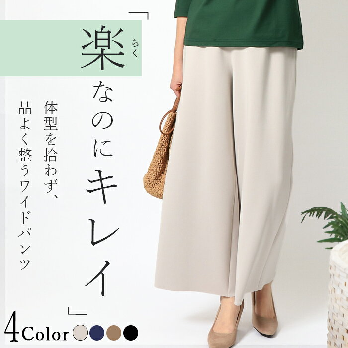 \今だけポイント5倍&初回購入5%offクーポンあり/きれい見え続くワイドパンツ レディース きれいめ イージーケア セレモニー 黒 シワになりにくい 落ち感 美脚シルエット 体型カバー 楽ちん 上品 きれいめ 大人カジュアル 通勤 オフィス 旅行 5,980 ~