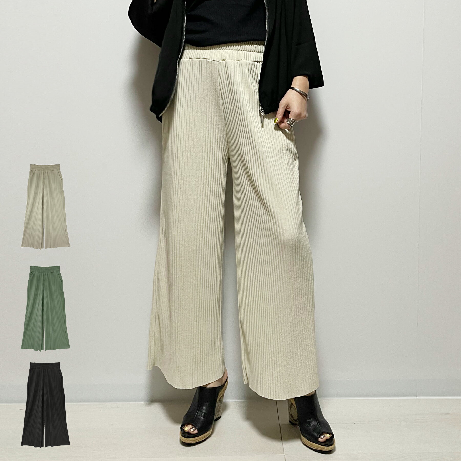 プリーツパンツ レディース ワイドパンツ 裾カット ボトムス ウエストゴム リラックス 春 夏 大人 体型カバー ゆったり 20代 30代 40代 50代 1,990 ~