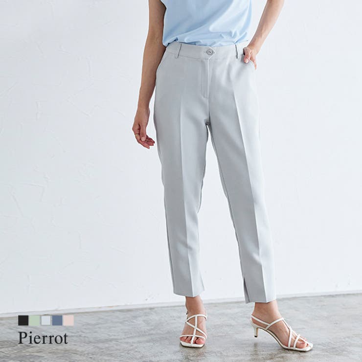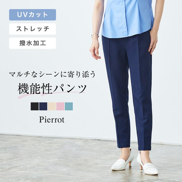 嬉しい機能がいっぱい“多機能ストレッチツイルテーパードパンツ”滑らかな肌触りで ストレッチ性があり、ストレスフリーな穿き心地の素材。 シワになりにくいのでお手入れも簡単です。 撥水加工・抗菌防臭・静電気防止・UVカット・ストレッチの5機能を付けた、贅沢な機能パンツです。 日常生活にありがちな、急な雨、発汗、乾燥肌など、幅広いお悩みに寄り添った多機能仕上げ。 デザインは幅広いスタイリングにも合わせやすいようにするため、ベーシックなデザインで仕上げました。 美脚効果を演出してくれる丈感もこだわりポイント。 オフィスからデイリーまで幅広いシチュエーションや、エイジレスにご着用いただける一本です。 ※商品画像は着用イメージです。 光や角度により、実物と色味が異なる場合がございます。 また表示のサイズ感も実物とは若干異なる場合もございますので、予めご了承ください。 【お買い物を楽しむための方法】**商品のお気に入り登録**カートボタン横のハートをクリック!気になるアイテムがお得になると通知が届きます。 チャンスをのがしません♪**ブランドのお気に入り登録**ブランドトップページの「お気に入りに追加」をクリック!新商品の情報を受け取ることができます。 【ブランド】Pierrot(ピエロ)【スペック】■サイズPM/M/L■実寸(約cm)【ウエスト/ヒップ/前股上/後股上/股下/ワタリ幅/裾幅】PM:32-47/48/28/38/61/28.5/15.5M:32-47/48/28/38/65/28.5/15.5L:34-49/50/28.5/38.5/65/29.5/16※実寸(平置きした状態でメジャー計測)の為、タグ表記のサイズとは異なります。 ■素材ポリエステル96%/ポリウレタン4%■洗濯表示液温は30℃を限度とし、洗濯機で弱い洗濯処理ができる塩素系及び酸素系漂白剤の使用禁止タンブル乾燥禁止日陰のつり干しがよい底面温度150℃を限度としてアイロン仕上げができるドライクリーニング禁止■備考透け感(淡色):若干あり透け感(濃色):なし伸縮性:あり裏地:なしポケット:あり(※バックポケットはフェイク)ファスナー:なしアイボリーに若干透け感が生じます。 ※機能は永久的なものではございません。 ■ご注意・生地のカッティングにより画像と異なる場合がございます。 同商品、同色におきましても色(染料)やロットによって伸縮性・伸び率、裁断上ずれなどが生じてしまう現象があります。 また、プリント加工の際に、インク飛びが目立ってしまう場合がございますが、手法上致し方ない現象となりますので、なにとぞご了承くださいませ。 ・同生産時期でも、色、サイズ、デザイン、素材の質感が多少異なる場合がございます。 サイズ詳細などの測り方はスタッフ間で統一、徹底はしておりますが、若干の誤差(約2〜3cm誤差)がある場合がございます。 また、ニット製品は生産の過程上「生地を織る際の糸の継ぎ目」繊維の「混紡」、プレス加工、製品洗い加工によって形やサイズ(5cm前後)に誤差が生じる場合がございますが品質上の問題はございません。 返品・交換について購入後の交換は受け付けておりません。 予めご了承ください。 返品を希望される場合は購入履歴一覧の「ショップへの問い合わせ」よりお問い合わせください。 =========================複数配送先指定について1件の注文に対して、異なる住所への配送は対応出来かねます。 恐れ入りますが、異なる住所へ配送をご希望の場合、配送先毎に分けて注文いただきますようお願い申し上げます。 【パンツ・ズボンWOMEN】ブラック ネイビー アイボリー ピンク ブルー PM M L 【10%OFFクーポン!2/10(火)1:59まで】Pierrot 多機能ストレッチツイルテーパードパンツ ☆ パンツ ストレッチ 撥水 抗菌防臭 静電気防止 UVカット オフィスカジュアル 美脚 低身長 レディース ピエロ 【Pierrot】 パンツ・ 3,031 ~