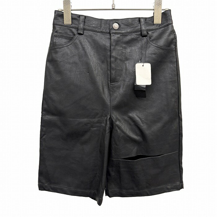 【もうすぐ終了|全品PT10倍|明後日3/26(木)01:59\3月お買い物マラソン/最大2,000円OFFクーポン配布中】ジーナシス 【新品】 ヴィーガンレザー ハーフパンツ ショートパンツ 左ひざにスリット ウエストゴム 裏地付き 合成皮革 F 黒 レディース 4,497 ~