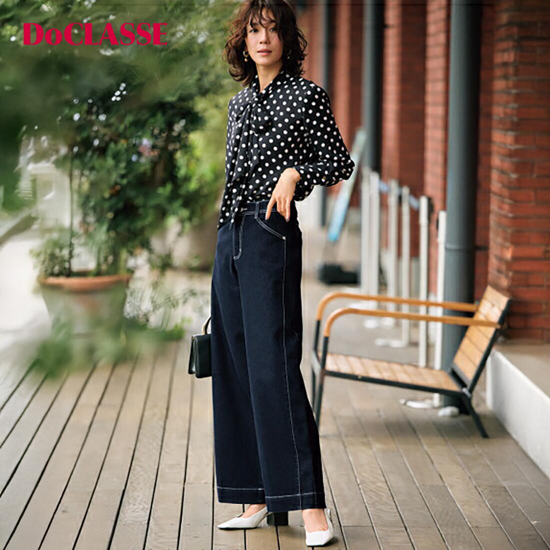 【ドゥクラッセ】 ライトデニム・サイドステッチワイド68cm レディース ( 7〜15 ) 30代 40代 50代 大人、輝く服 【DoCLASSE】 8,457 ~