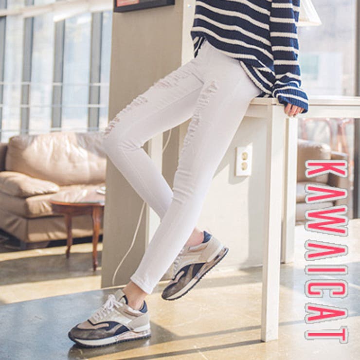 【10%OFFクーポン!2/10(火)1:59まで】KawaiCat 【pt13665】スクラッチデザインでヴィンテージ感を演出しポイントを与えてくれるダメージポイントシンプルスキニーパンツ(サイズS?L) パンツ・ズボン 5,083 ~