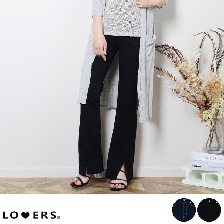 【10%OFFクーポン!2/10(火)1:59まで】LOVERS 冬新作 スリットフレアデニム パンツ ボトムス デニム セミフレア スリット 美脚 脚長 シンプル おとな カジュアル 上品 トレンド 韓国ファッション パンツ・ズボン 4,708 ~