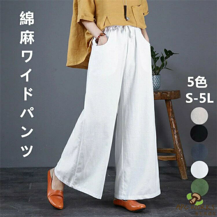 即納 綿麻 パンツ リネン45% レディース バルーンパンツ 夏 ゆったり ワイドパンツ サルエルパンツ ボトムス ズボン ガウチョパンツ ウエストゴム ポケット付き 無地 着痩せ きれいめ 大きいサイズ 美脚 おしゃれ カジュアル 送料無料 2,780 ~
