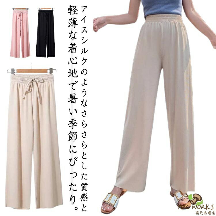 美脚パンツ ワイドパンツ 夏パンツ リブ サラサラ 冷感 レディース 涼しい 美脚パンツ ズボン 速乾 アイスシルクパンツ イージー パンツ 9分丈 ロング丈 ストレート 脚長 ストレッチパンツ 2,378 ~
