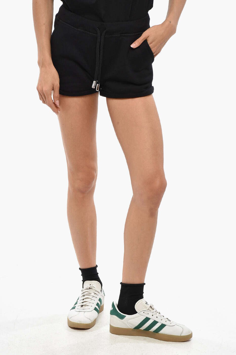 サイズ 総丈 84cm 股下 55cm ウエスト 68~110cm(総ゴム) ヒップ 120cm 渡り幅 39cm 裾幅 36cm サイズの測り方についてはこちらをご参照ください。 商品説明 ■デザインの特徴 サイドと裾に切替デザインを施した、表情豊かなワイドパンツ。 無地ブラックとブラックデニムライク素材を組み合わせることで、 同じブラックトーンでも奥行きのある印象に仕上げました。 シンプルながらも一癖あるデザインで、コーディネートに自然とモード感をプラスします。 ■素材特性 柔らかく、肌触りの良い素材を使用。 落ち感があり、動くたびにしなやかなラインを描きます。 デニムライク生地も硬さはなく、軽やかな穿き心地です。 ■着心地/サイズ感 ウエストは総ゴム仕様で、締め付け感なく楽ちん。 ワイドシルエットが脚のラインや体型をさりげなくカバーしつつ、 縦の切替ラインですっきりとした印象に見せてくれます。 ■スタイリング提案 シンプルなトップスを合わせるだけで、パンツのデザインが引き立つスタイルに。 シアーシャツやモードな羽織と合わせれば、洗練された大人のブラックコーデが完成。 足元はサンダルで抜け感を出すのも、ブーツで引き締めるのもおすすめです。 生地感 透け感 なし 厚み なし 伸縮性 あり(異素材部分:なし) 裏地 なし 素材など 素材 (本体)レーヨン 65% ナイロン 25% ポリウレタン 10% (別布)レーヨン 55% ポリエステル 30% ナイロン 15% 手洗い 可 生産国 中国 メール便 不可 モデル身長 162cm ガイドこちらの商品は、メール便不可となっております。 モニターの環境により、多少色味が異なって見える場合がございます。 私たちが着てみました ディースクエアード DSQUARED2 デニムショーツ ショーツ レディース ブラック Denim shorts S72MU0482S25516900 関税 送料無料 2026AW dk 35,900 ~