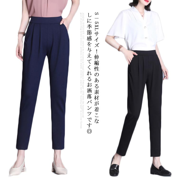 S−5XLサイズ!ストレッチパンツ タック入り テーパードパンツ レディース サルエルパンツ ストレッチ 伸縮性 9分丈パンツ ウエストゴム ボトムス オフィス キレイめ カジュアル シンプル 無地 春夏 大きサイズ 4,110 ~