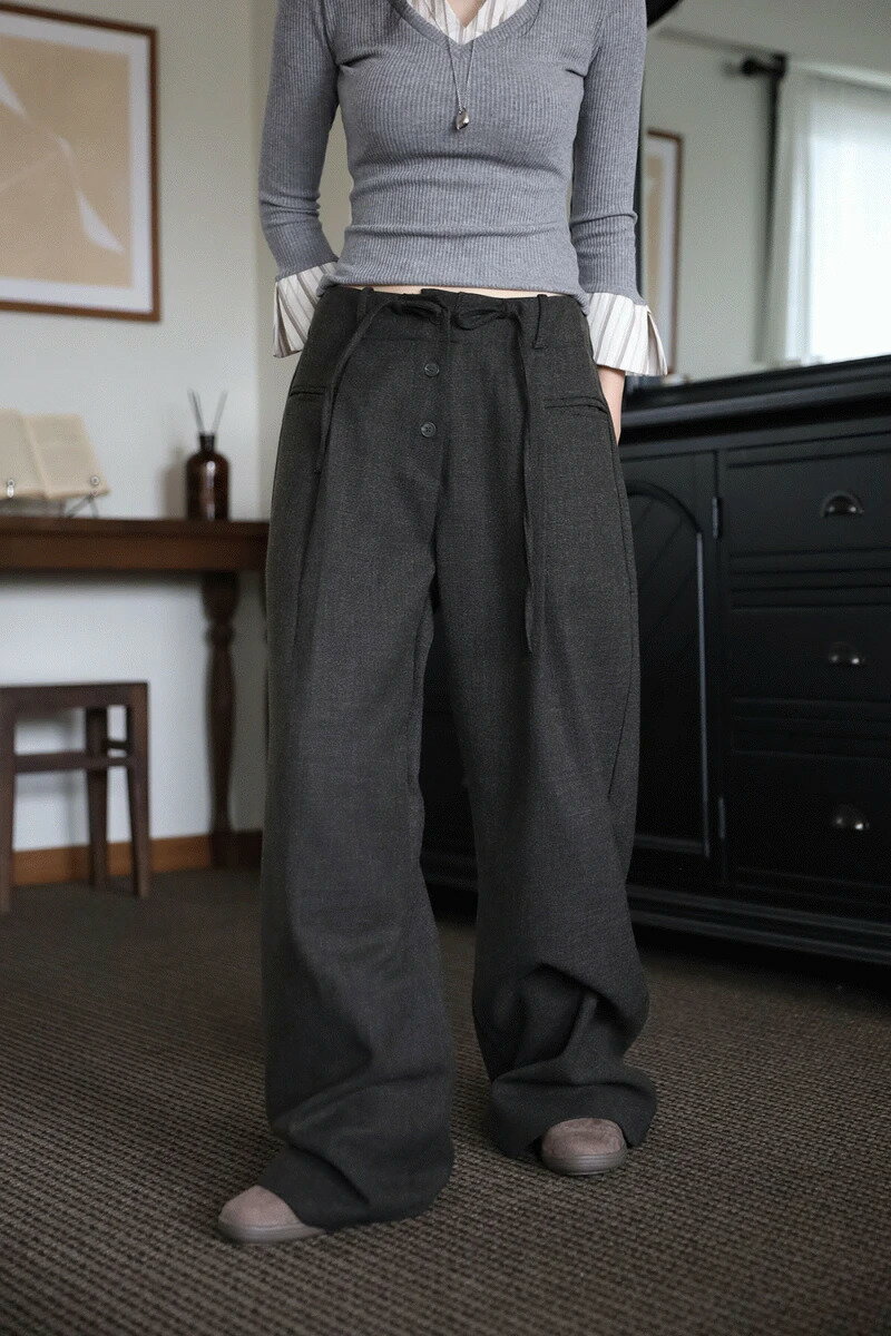 ヒエルブ切り替えストリングワイドバンディングスラックス パンツ レディース|韓国 moaround|コーディブック 5,070 ~