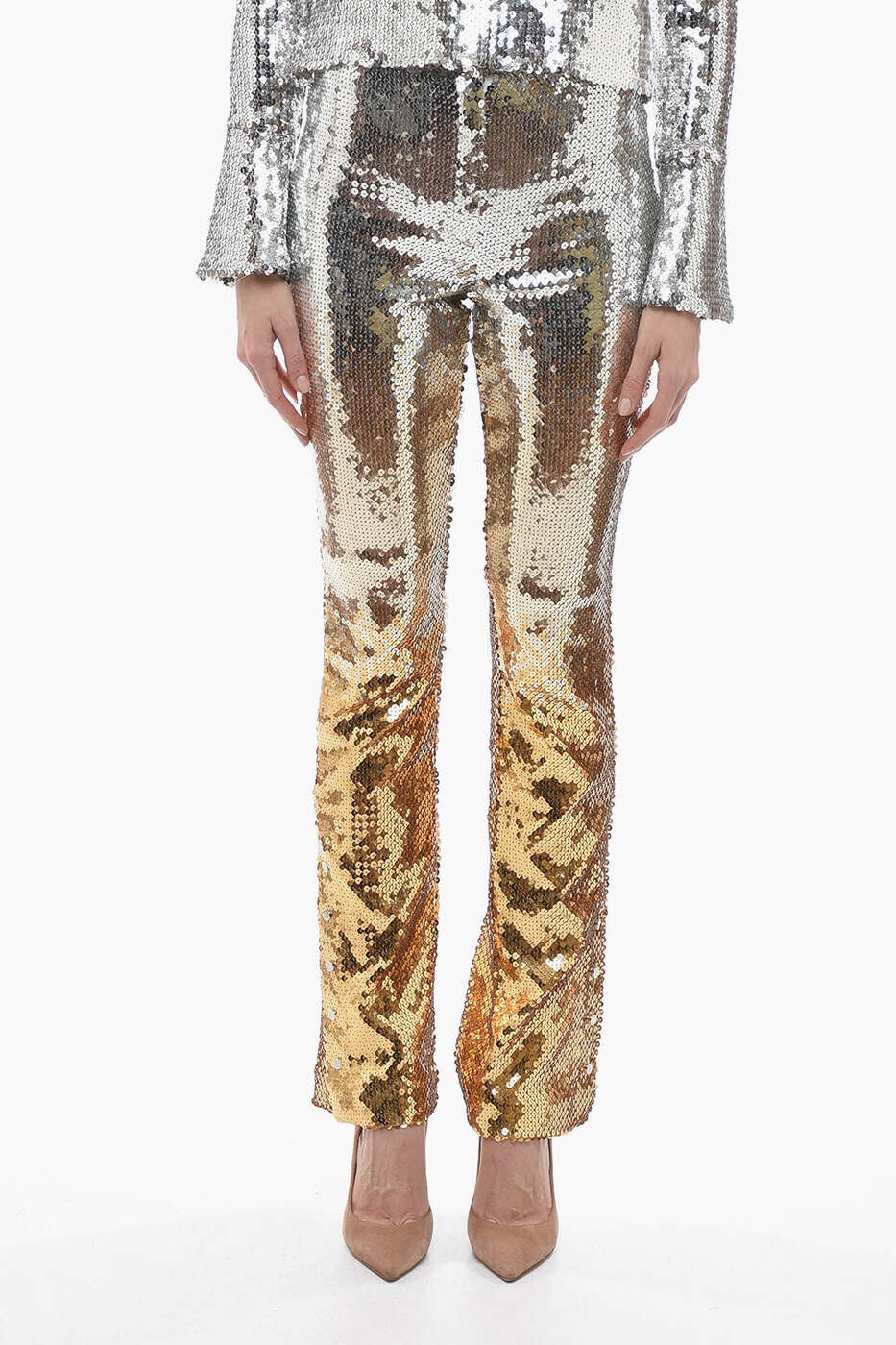 お目立ち度MAX!! ピッカピカに輝くメタリックのロングパンツ! パンツは膝下からフレアになっており、脚長効果バツグン! スタイルを良く見せてくれるシルエットを演出! 男女兼用! パーティーやイベント、カラオケ、ダンス発表会やステージ衣装として☆ チームで揃えたり、お友達と色違いで合わせると、お目立ち度も更にUP!! ●メタリック フレアパンツ/ブーツカット/ベルボトム ●カラー ・ブラック ・ゴールド ・シルバー ・ダークシルバー ・ブルー ・イエローグリーン ・ホワイトオーロラ ●サイズ(平置きでのおよその寸法、数センチの誤差は生じます) ・Sサイズ…ウエスト30cm(横に伸ばすと46cm)・ヒップ40cm・腿付け根幅20cm・膝幅17cm・裾幅33cm・股上23.5cm・丈107cm ・Mサイズ…ウエスト32cm(横に伸ばすと48cm)・ヒップ42cm・腿付け根幅21cm・膝幅18cm・裾幅34cm・股上23.5cm・丈108cm ・Lサイズ…ウエスト34cm(横に伸ばすと50cm)・ヒップ44cm・腿付け根幅22cm・膝幅18.5cm・裾幅35cm・股上24cm・丈109cm ・XLサイズ…ウエスト36cm(横に伸ばすと52cm)・ヒップ46cm・腿付け根幅23cm・膝幅19cm・裾幅36cm・股上24cm・丈110cm ・XXLサイズ…ウエスト38cm(横に伸ばすと54cm)・ヒップ48cm・腿付け根幅25cm・膝幅20cm・裾幅37cm・股上24cm・丈111cm ●素材/ポリエステル、コットン、スパンデックス ※生地の性質上、稀に箔落ちなどがあります。 ご了承下さい。 メタリック素材の特徴と致しまして、繊細な商材ですので、商品の生地が重なったりこすれたりした段階で、剥離等が起きやすいデリケートな素材です。 取り扱いには十分配慮をして参りますが、ある程度の剥離につきましてはご理解いただけますようお願いいたします。 同じお色、サイズでも、生産時期により微妙に色味や質感、ストレッチ具合が変わる場合がございます。 サイズ違いでそろえる方はご注意ください。 上記、ご了承くださいませ。 ダンス,衣装,ダンス衣装,ステージ,ステージ衣装,無地,コスプレ,コスチューム,ハロウィン,レディース,メンズ,ユニセックス,大きいサイズ,小さいサイズ,Sサイズ,Mサイズ,Lサイズ,XLサイズ,XXLサイズ,2XLサイズ,メタリック,メタリックロングパンツ,ロングパンツ,派手,キラキラ,シャイニー,ヒップホップ,HIPHOP,ジャズダンス,仮装,女装,キッズダンス,キッズダンサー,DANCE,ブラック,クロ,黒,シルバー,ゴールド,黄緑,イエローグリーン,グリーン,ミドリ,緑,水色,ライトブルー,ターコイズ,ピンク,メタル,ホワイト,白,ホワイトオーロラ,発表会,フェス衣装,ポールダンサー,ポールダンス,サイバー,トランス,野外フェス,クラブウェア,キッズ,ジュニア,レッスンパンツ,社交ダンス,バブリー,バブリーダンス,ヒッピー,パンタロン,フレアパンツ,ブーツカット,サルサ,美脚パンツ,ラテンダンス,サルサ,タンゴ,ボトム,ボトムス,ラッパパンツ,ラッパズボン,ベルボトム,マーメイド 男女兼用☆ダンス衣装・ステージ衣装に!メタリック フレアパンツ ロングパンツ ブーツカット ベルボトム ラッパズボン マーメイド パンタロン ジャズダンス 舞台 衣装 派手 バブリーダンス カラオケ 衣裳 ヒップホップ 大きいサイズあり S630-S664 1,970 ~