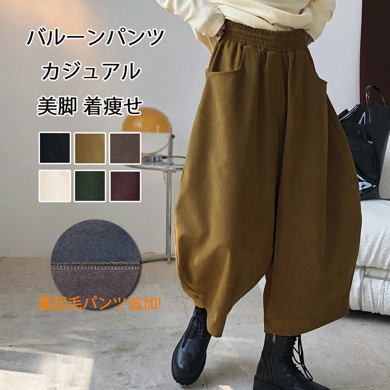 バルーンパンツ レディース 秋 ワイドパンツ ウエストゴム ハイウエスト コクーンパン 3,080 ~