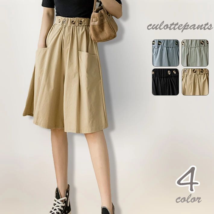 ゆったりAライン ナチュラルカラーサラリとした薄手ストレッチ素材膝丈 キュロットパンツ 【メール便で送料無料】 膝丈のゆったりAラインシルエットで、脚が細く見える。 ハイウエストでスタイルアップ効果も。 ハリがあり、サラッとした伸縮性のある素材が涼し気。 ゆる可愛いビッグシルエットが今風。 サイドにポケット付きで、使いやすい。 ナチュラルな合わせやすい、4カラー展開。 キュロットパンツ ショートパンツ ガウチョパンツ スカーチョ ハーフパンツ キュロットスカート 【メール便(ネコポス便)で送料無料】※代引き決済は対象外※ ☆レビューを書いて10%OFFクーポンGET☆ ▼サイズ・カラー・素材 【実寸サイズ】※すべて平置き採寸です。 若干の差はご了承下さい。 1サイズ(M〜L相当)パンツの着丈:約60cmウエスト:約60cm〜80cm(※ゴム調整)ヒップ:約114cm前股上:約42cm後ろ股上:約45cm股下:約24cm渡り幅:約41cm裾周り:約88cm【カラー】ライトグレーライトカーキブラックベージュ【素材】ポリエステル:97%パンデックス:3%伸縮性:あり透け感:なし生地の厚さ:薄手〜中程度裏地:なし【着用モデルサイズ】身長:165cm 体重:45kg M着用【製品に関するご注意!】商品のカラーは、出来る限り実際の商品に近づける様に努力しておりますが、撮影環境やモニター環境の違い等により、実際の商品と商品画像とで違うと感じる場合がございます。 予めご了承の上でご購入をお願い申し上げます。 【メール便で送料無料】【レビューを書いて10%OFFクーポンGET】ゆったりAライン ナチュラルカラー サラリとした薄手ストレッチ素材 膝丈 キュロットパンツ ショートパンツ ガウチョパンツ スカーチョ ハーフパンツ キュロットスカート ショート丈 春 夏 春夏 レディース 商品到着後レビューを書いて10%OFFクーポンGET!! 【メール便で送料無料】 膝丈のゆったりAラインシルエットで、脚が細く見える。 ハイウエストでスタイルアップ効果も。 ハリがあり、サラッとした伸縮性のある素材が涼し気。 ゆる可愛いビッグシルエットが今風。 サイドにポケット付きで、使いやすい。 ナチュラルな合わせやすい、4カラー展開。 キュロットパンツ ショートパンツ ガウチョパンツ スカーチョ ハーフパンツ キュロットスカート 着丈はモデルさんより長めですが、ハーフパンツととして着こなせるキュロットです。 ウエストゴムのボタンも可愛いです。 パンツ着丈はほぼ膝のあたりです。 ゆったりしていて動きやすいです。 伸縮性のあるサラッとした肌に付かない感じで着やすいです。 生地がとてもしっかりしていてストレッチもあるので楽チンな着心地です。 ウエストゴムなのでストレスフリーでシンプルデザインで良い感じです。 【メール便で送料無料】【レビューを書いて10%OFFクーポンGET】ゆったりAライン ナチュラルカラー サラリとした薄手ストレッチ素材 膝丈 キュロットパンツ ショートパンツ ガウチョパンツ スカーチョ ハーフパンツ キュロットスカート ショート丈 春 夏 春夏 レディースゆったりAライン ナチュラルカラーサラリとした薄手ストレッチ素材膝丈 キュロットパンツ 【メール便で送料無料】 膝丈のゆったりAラインシルエットで、脚が細く見える。 ハイウエストでスタイルアップ効果も。 ハリがあり、サラッとした伸縮性のある素材が涼し気。 ゆる可愛いビッグシルエットが今風。 サイドにポケット付きで、使いやすい。 ナチュラルな合わせやすい、4カラー展開。 キュロットパンツ ショートパンツ ガウチョパンツ スカーチョ ハーフパンツ キュロットスカート 【メール便(ネコポス便)で送料無料】※代引き決済は対象外※ ☆レビューを書いて10%OFFクーポンGET☆ ▼サイズ・カラー・素材 【実寸サイズ】※すべて平置き採寸です。 若干の差はご了承下さい。 1サイズ(M〜L相当)パンツの着丈:約60cmウエスト:約60cm〜80cm(※ゴム調整)ヒップ:約114cm前股上:約42cm後ろ股上:約45cm股下:約24cm渡り幅:約41cm裾周り:約88cm【カラー】ライトグレーライトカーキブラックベージュ【素材】ポリエステル:97%パンデックス:3%伸縮性:あり透け感:なし生地の厚さ:薄手〜中程度裏地:なし【着用モデルサイズ】身長:165cm 体重:45kg M着用【製品に関するご注意!】商品のカラーは、出来る限り実際の商品に近づける様に努力しておりますが、撮影環境やモニター環境の違い等により、実際の商品と商品画像とで違うと感じる場合がございます。 予めご了承の上でご購入をお願い申し上げます。 【メール便で送料無料】【レビューを書いて10%OFFクーポンGET】ゆったりAライン ナチュラルカラー サラリとした薄手ストレッチ素材 膝丈 キュロットパンツ ショートパンツ ガウチョパンツ スカーチョ ハーフパンツ キュロットスカート ショート丈 春 夏 春夏 レディース 商品到着後レビューを書いて10%OFFクーポンGET!! 【メール便で送料無料】 膝丈のゆったりAラインシルエットで、脚が細く見える。 ハイウエストでスタイルアップ効果も。 ハリがあり、サラッとした伸