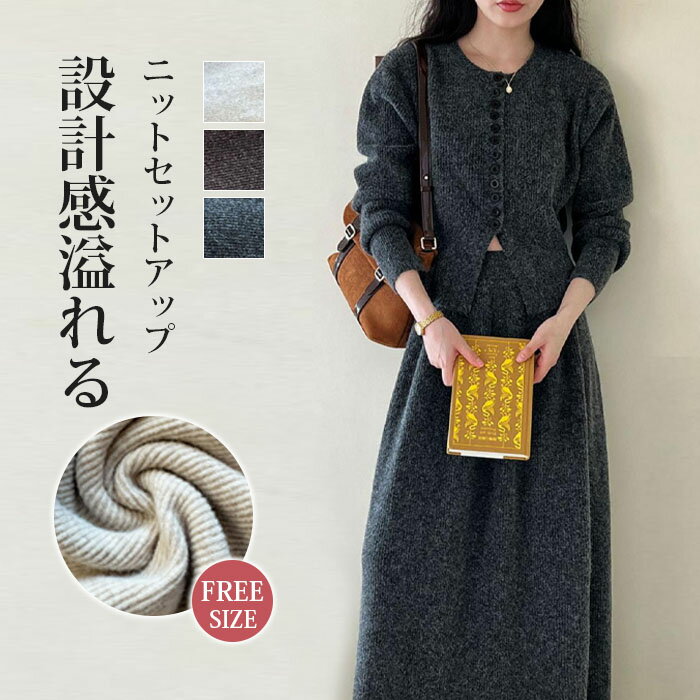 新生活 セットアップ 上下セット スカート スーツ 春 秋 冬 レディース きれいめ ニットタイトスカート トップス ロング マキシ丈 ニット セーター リゾート カーディガン 大人 スーツ 大きいサイズ 長袖 カジュアル シンプル 無地 10,500 ~