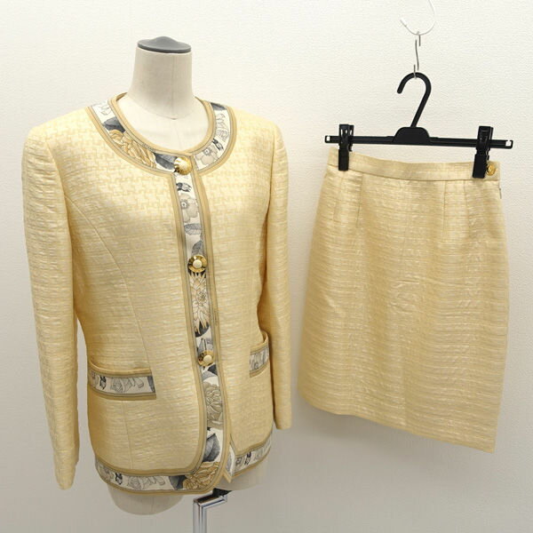 ※『USED品』です。 お客様都合による商品のご返品は一切承っておりませんので商品情報・画像を参考にご購入ください。 ※左右・前後で着丈の長さが違う場合は、最短と最長の長さを以下のように表示します。 例)80?90cm (最短が80cm、最長が90cm) ≫ 配送について ≫ご利用ガイド ≫よくある質問【中古】CHANEL(シャネル) スカートセットアップ ツイード/2011年 アイボリー コットン ジャンル スカートセットアップ ブランド CHANEL(シャネル) 商品名 -型番 P40438/P40439男女別 レディース表記サイズ ジャケット42スカート42実寸サイズ ■トップス肩幅 : 約 43 cm袖丈 : 約 51.5 cm身幅 : 約 44 cm着丈 : 約 59 cm■スカートウエスト : 約 82 cm (半身×2のサイズ)総丈 : 約 51.5 cmスリット : 約 31 cmカラー アイボリーデザイン -ツイード/2011年 素材 コットン、ポリエステルコンディションレベル 【C】ふつうに使える コンディションの備考 【トップス外側】 ・全体的 ⇒ 汚れ若干 / 毛羽立ち若干【トップス内側】 ・全体的 ⇒ 薄っすらと汚れている ・脇下 ⇒ 汗染み若干 ・首周り ⇒ 汗染み目立つ ・袖口 ⇒ 汗染み若干【スカート外側】 ・全体的 ⇒ 汚れ若干 / 毛羽立ち若干 ・フロント ⇒ 小さなシミ若干【スカート内側】 ・全体的 ⇒ 薄っすらと汚れている製造番号・刻印 -シリアル *** 付属品 なし 【中古】CHANEL(シャネル) スカートセットアップ ツイード/2011年 アイボリー コットン 185,929 ~