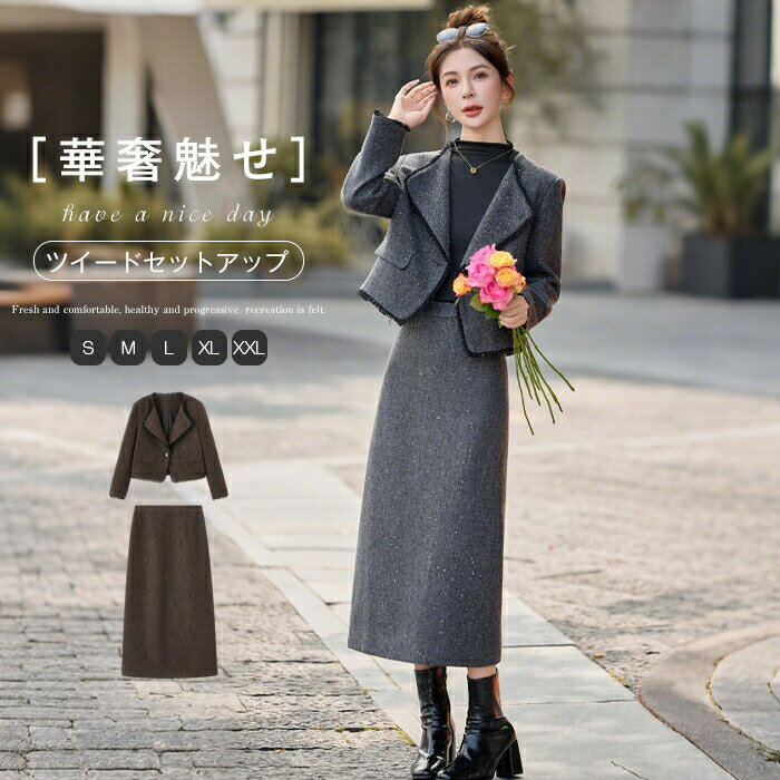 セットアップ 【上下2点セット】ツイードスーツ スカートスーツ 10,660 ~