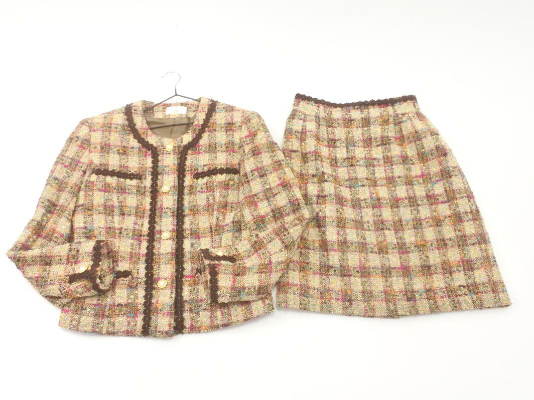 Aylesbury アリスバーリー ツイード セットアップ ジャケット スカート スーツ size上9 51 下9 48/ベージュ ◇■ ☆ gba3 レディース 裏地:あり ファスナー:バック 肩パッドが入っています。 商品に目立つヨゴレなど無く、USEDとして良い状態です。 表記サイズ:上9 51 下9 48 実寸サイズ: 上:肩幅39cm身幅(脇下)47cm後ろ着丈(襟元より)46cm全長-袖丈55cm 下:腰幅29cm全長50cm裾幅47cm ベージュ ★素材は画像にてご確認ください。 (画像にない場合は基本的に不明となります) ネコポスについて: ネコポスOKとタイトルに記載されていない商品はネコポス対象外となっております。 →ネコポス・送料について ご注意: お品の状態に関しては個人差がありますので神経質な方はご遠慮ください。 写真の色はご覧のモニターにより実際の色や明るさ等と異なって見える場合があります。 あらかじめご了承ください。 →ご注文に関してのご注意 Aylesbury アリスバーリー ツイード セットアップ ジャケット スカート スーツ size上9 51 下9 48/ベージュ ◇■ ☆ gba3 レディース【USED】【中古】【古着】【ブランド古着買取・販売ABJ】 6,600 ~