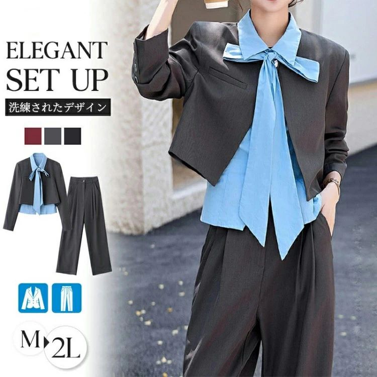 レディース セットアップ 3点セット 結婚式 入学式 卒業式 卒園式 春 夏 秋 冬 白 黒 パンツスーツ ボウタイブラウス リクルートスーツ 上下 キャリア ビジネススーツ セレモニースーツ きれいめ 通勤 就活 母親 20代 30代 40代 50代 14,437 ~