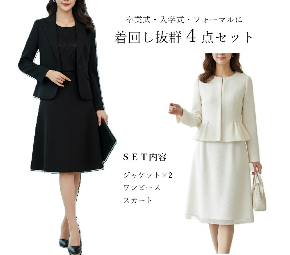 ■詳細■ これだけで入学・卒業・お宮参り・パーティーシーン等 様々なシーンで着ていただけます。 汎用性抜群のスーツセットです。 お得な4点セットスーツ! ・テーラードジャケット(ブラック) ・ノーカラージャケット(ベージュ) ・ドッキングワンピース(ブラック) ・スカート(ベージュ) さらに!華やかさをプラス ・コサージュとリボン付き。 <ベージュ・ブラック系> ジャケット+スカート。 程よい分量のペプラム切替と縦ラインのブレードが アクセントになったノーカラーデザイン。 可憐に広がるフレアーと裾のシフォン切替がポイントのスカート。 <ブラック> ジャケット+ワンピース。 着回しやすさにこだわったテーラードジャケット。 繊細なレースで切替えたワンピースの ドッキングデザインはウエスト周りの体型カバーにも。 ・コサージュとリボン付き。 セットで着ても、お手持ちのお洋服と合わせてもOK。 着回し力抜群です。 ・紫外線対策のUV ・防シワ素材 ・洗濯機可 <着用シーン> 通勤、ビジネス、オフィスウェア、入園式、卒園式、 入学式、卒業式、結婚式、パーティー、二次会、お呼ばれ、 七五三、お宮参り、発表会、授業参観、面談、お受験、 面接、謝恩会、保護者会など幅広いシーンで活躍! ■カラー■ ・ベージュ/ブラック *ご注意ください* お使いの環境により画面上と実物では 多少色具合が異なって見える場合がございます。 ■サイズ■ 【ベージュ・ブラック系】 ノーカラージャケット 7AR:バスト88 肩幅36 着丈46 袖丈58 スカート 7AR:ウエスト65 ヒップ99 総丈52.5 ワンピース 7AR:バスト88 肩幅35 着丈89.5 袖丈47 ■素材■ ポリエステル100% 裏地付・ポケットあり 【入学式・結婚式・フォーマル】<4点セット>フォーマル スーツ セレモニースーツ(7号)ベージュ/ブラック 6,930 ~
