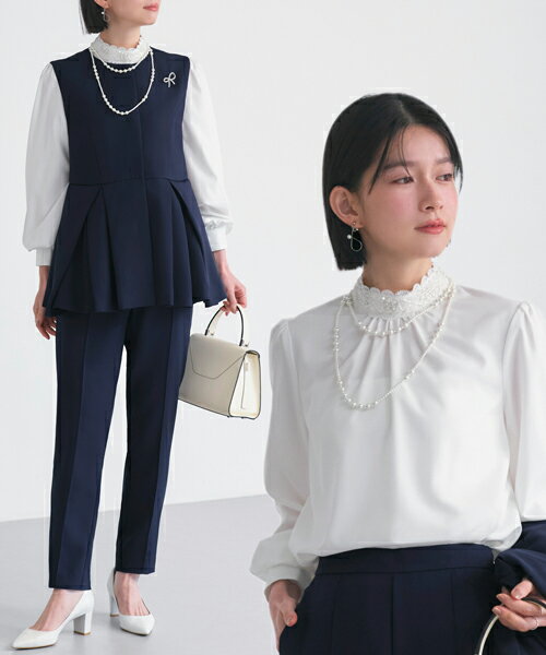Navy x White Pinkbeige x White Black x White Detail 商品詳細 【3点set】 レイヤードペプラムジレ&スリムテーパードパンツビジューブラウス付き 【ジレ】+【トップス】+【パンツ】の3点SET 【もう迷わない!ハレの日コーデが、このワンセットで完成!】 ビジューブラウスでお顔まわりをグッと華やかに。 可愛いママのリアルバイ・セットスーツ "ハレの日"も普段使いにも楽しめる ママになると意外と多いセレモニーシーン。 品よく華やかで特別な日にふさわしいお洋服で挑みたいもの。 ルイルエのセレモニー服は、式典以外にも学校行事や発表会 きちんとした装いが必要な時にも、幅広いシーンで活躍してくれます♪ 【オケージョン】 ― シーンやスタイルに合わせて着回し自在 ― ・入園・入学式 ・卒園・卒業式 ・学校行事 セットでも単品でも使える!着回し力たっぷりの3点セット ウエストで切り替えたペプラムが体型カバーとスタイルアップを叶えます。 繊細なビジューとレースのスタンドカラーが、上品な華やぎを演出します。 センターピンタックで足が綺麗に見える仕様、 後ろウエストはゴム入りで楽に着用して頂けます。 【ディテール】 ◆ジレ 体型カバーとスタイルアップを同時に叶えるペプラムジレ。 ウエストから広がるペプラムに、チュールをレイヤード。 程よいボリュームと立体的なシルエットを演出します。 ・開き具 フロントスナップ仕様で、簡単着脱&見た目すっきり♪ ・ペプラム ペプラムシルエットで 体型カバーとスタイルアップを両立します。 ・ポケット 左右に便利なシームポケット付き。 ・チュール 内側にチュールを忍ばせ、ペプラムのボリュームと立体感をキープ。 美しいシルエットを保ちます。 ※ビジューは、配置に個体差があります。 ◆ブラウス 顔まわりを華やかに彩る、ビジューブラウス。 繊細なビジューをあしらったスタンドカラーが上品な一着。 ・スタンドカラー 繊細なビジューで顔周りを華やかに。 ・開き具 パールボタン&ループ仕様。 見た目はすっきりと、スムーズに着脱できます。 ・袖口 程よくギャザーを入れた袖口に、パールボタンをプラス。 手元まで上品に仕上げた、こだわりを感じるデザインです。 ◆パンツ センターラインに施した立体的なピンタックが脚全体をすらりと見せてくれるスリムテーパードパンツ。 シンプルなデザインで、単品での着回しも可能です。 ・開き具 するんとはける、はき込みタイプでスッキリと。 ・ウエストゴム 後ろウエストはゴム仕様で楽なはき心地です。 ・ポケット 左右に便利なポケット付き。 ◆裏地 ジレは総裏仕様、パンツはストレッチ性のある半裏仕様。 さらりとした着心地でオールシーズン着て頂けます。 ◆生地 ジレ・パンツ:しなやかなストレッチで軽やか。 皺になりにくいポリエステルクロス。 ・ストレッチ しなやかでストレッチ性がある素材なので動きやすさはもちろん、 長時間の着用でもストレスを感じにくい素材になっています。 ブラウス:ストレッチの効いたポリエステル×ポリウレタン。 ストレスフリーでやさしい着心地。 ・ウォッシャブル 手洗い可能なウォッシャブル仕様 ご家庭で洗えるウォッシャブル生地を使用しているので、クリーニングに出す手間も省け、いつでも洗い立ての着心地でお過ごしいただけます。 洗濯機には入れず、優しく手洗いして下さい。 洗剤はおしゃれ着用の中性洗剤がおすすめです。 【カラーバリエーション】 ・ピンクベージュ ・ネイビー ・ブラック サイズ サイズ ジレ *着丈 バスト ウエスト 肩幅 S7号 68 96 106 52 M9号 68 96 106 52 L11号 68 96 106 52 LL13号 68 96 106 52 ブラウス *着丈 バスト 肩幅 袖丈 S7号 61 96 35 58 M9号 62 100 36 59 L11号 63 104 37 60 LL13号 64 108 38 61 パンツ パンツ丈 ウエスト ヒップ 股下 渡り 裾幅 S7号 93 64?78 91 68 28.5 14 M9号 94 68?82 95 29.5 15 L11号 95 72?86 99 30.5 16 LL13号 96 76?90 103 31.5 17 *=SNP(ショルダーネックポイント) ■サイズガイド■ 素 材 【ジレ】表地:ポリエステル 96% ポリウレタン 4% ペプラム中地(チュール):ポリエステル 100% 裏地:ポリエステル 100% 【ブラウス】表地:ポリエステル 96% ポリウレタン 4% 襟ビジューテープ 基布:ナイロン 100% 刺繍糸 上糸/下糸:ポリエステル 100% モチーフ:ナイロン 100% 【パンツ】表地:ポリエステル 96% ポリウレタン 4% 裏地:ポリエステル 100% 商品仕様 ◆伸縮性:【ジレ・パンツ】表地のみあり 【ブラウス】なし ◆裏地:【ジレ】あり 【ブラウス】なし 【パンツ】半裏 ◆開き具:【ジレ】前開き包みスナップ釦 4セット 【ブラウス】後ろ開き パール釦+ゴムループ 1セット 【パンツ】なし(後ろウエストゴム) ◆カラー:ブラック×ホワイト/ネイビー×ホワイト/ピンクベージュ×ホワイト 備 考 ※商品を平置きにし、メジャーにて手作業による採寸をしております。 若干誤差がございます。 サイズ等で不明な点はお問い合わせください。 ◆レビューは商品到着後でお願いします。 ■ご利用ガイド■ 【洗える/ストレッチ】2026春新作 レディース セットアッ