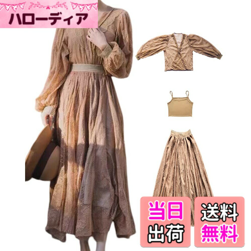 【送料無料】Collecala ワンピース きれいめレースドレス レディース 結婚式ドレス3点セットアップ パフスリーブ長袖ブラウス+キャミソール+レースロングスカート ゆったり仕様着痩せ 上品ドレスおしゃれ シアー きれいパーティー 結婚式 通勤 色:モカ、サイズ:L Long 9,588 ~