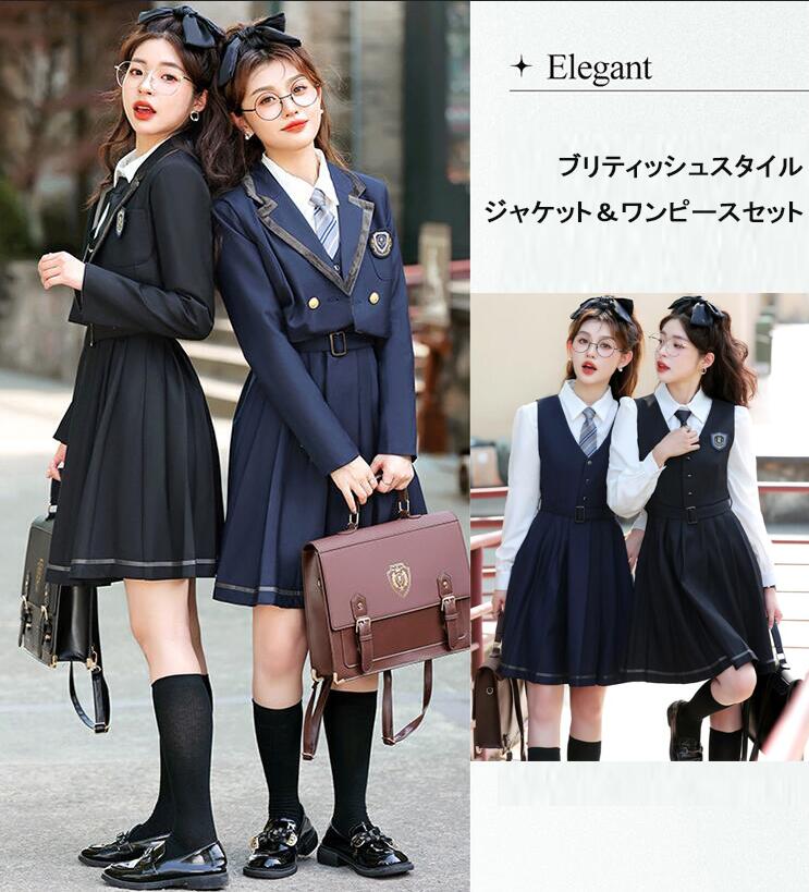セットアップ 学生服 長袖 ワンピース 女の子 レディース ロング丈 制服風 フォーマル ワンピーススーツ カジュアル 学生服 黒 ブラウン 白 発表会 ピアノ 入学式 卒業式 通学 通勤 無地 女子高生 中学生 大学生 入学式 ジュニア フォーマル ジャケット ホルターネック 2,670 ~