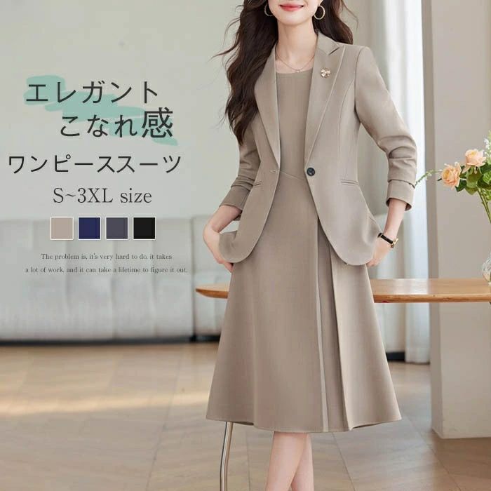 50代 カジュアル 通勤 オシャレ フォーマル オフィス レディース 長袖 ワンピーススーツ 卒業式 ジャケット 秋 30代 スーツ 40代 春 卒園式 セットアップ ワンピース 大人 シンプル Aラインワンピース ビジネス OL 上下セット テーラードジャケット 女性らしい 入学式 8,380 ~