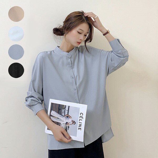 レディース シャツ ブラウス 楽天 開襟シャツ 襟付き オープンカラーシャツ 長袖 シャツブラウス トップス 通勤 通学 無地 シンプル カジュアル きれいめ おしゃれ 大人 可愛い 春 秋 1,998 ~