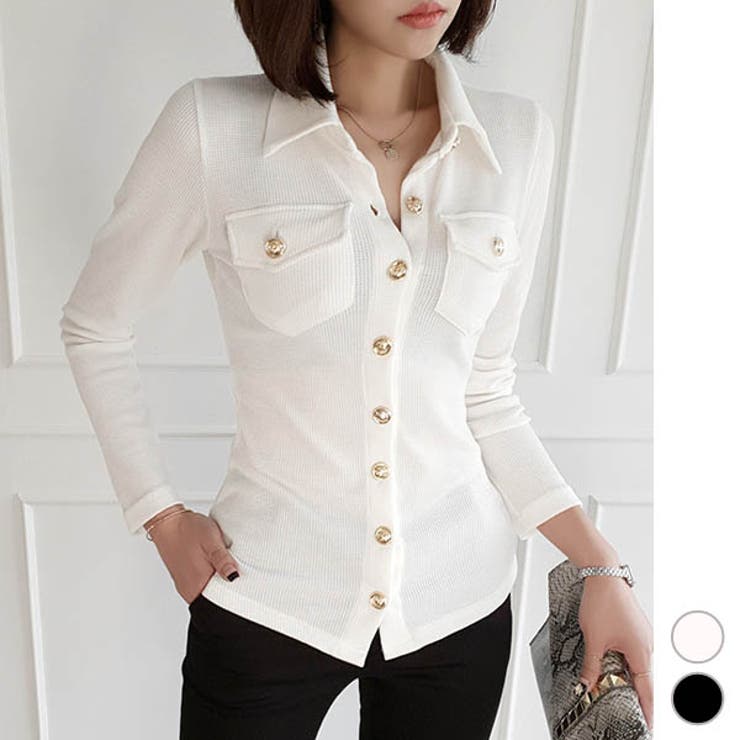 スタイリッシュなデザインのブラウスのご紹介です。 伸縮性のあるワッフル素材で着心地が良く、金ボタンがポイントとなってシックな着こなしが完成します。 カワイキャットの特徴である女性らしいシルエットと高級感溢れるデザインが魅力のアイテムです。 ** モデルサイズ : 171Cm / 51kg / 通常着用サイズ : S / 着用サイズ : Free ■商品説明 ├ カラー │ Black / Ivory ├Size : Free (S~M), L │Free : 肩幅 : 35Cm / バスト幅 : 38Cm / 袖丈 : 59Cm / 着丈 : 56Cm │L : 肩幅 : 38Cm / バスト幅 : 42Cm / 袖丈 : 59Cm / 着丈 : 59Cm │製造国 : 韓国 ├ 素材 : ポリエステル95%+ポリウレタン5% └ 洗濯方法: ドライクリーニング ■モデルサイズ身長:171cm体重:51kgモデル着用サイズ:Free サイズ返品・交換について購入後の交換は受け付けておりません。 予めご了承ください。 返品を希望される場合は購入履歴一覧の「ショップへの問い合わせ」よりお問い合わせください。 =========================複数配送先指定について1件の注文に対して、異なる住所への配送は対応出来かねます。 恐れ入りますが、異なる住所へ配送をご希望の場合、配送先毎に分けて注文いただきますようお願い申し上げます。 【トップスWOMEN】Black Ivory S~M L 【10%OFFクーポン!3/26(木)1:59まで】KawaiCat シャツ レディース トップス 長袖 ワッフル素材 金ボタン タイト スリム カットソー 上品 おしゃれ きれいめ オフィス お仕事 韓国服 韓国 春 秋 冬 黒 白 to21472 ト 6,299 ~