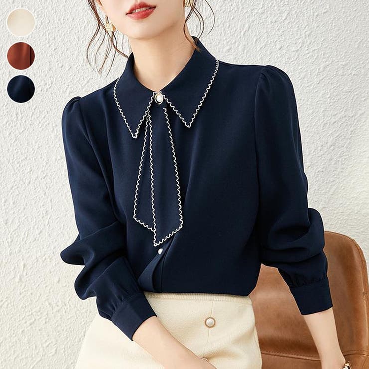 ボウタイが顔まわりを華やかに彩る、上品ボウタイブラウス■デザイン・シルエットボウタイデザインが顔まわりを華やかに演出する、上品な印象のブラウス。 シンプルながらも存在感があり、きちんと感のあるスタイルに仕上がります。 程よくゆとりのあるシルエットで、体のラインを拾いにくく、すっきりとした着こなしが叶います。 ■素材・ハリ感のある素材を使用し、型崩れしにくい・きれいなシルエットをキープし、上品な印象を演出・さらっとした着心地で、快適に着用可能■コーディネートテーパードパンツやスカートと合わせて、通勤やオフィスシーンにおすすめ。 ジャケットのインナーとしても映え、きれいめスタイルが簡単に完成します。 オン・オフ問わず活躍する、着回し力の高い一枚です。 --------------------------------------------------伸縮性:なし透け感:ホワイトややあり裏地:なしポケット:なし生地感:さらっとしたポリエステル生地注意点:お洗濯方法によっては縮みや色あせの可能性あり。 乾燥機等のご使用はお控え下さい。 ※商品単体でのお写真が実物に最も近いお色味となっております。 モデル:160cm/167cm■平置きサイズ(cm)サイズ:M/L着丈:56/59肩幅:34/36.5身幅:51.5/54.5袖丈:60/61天幅:20前下がり:10※生地や素材の性質により2cm前後(ニット製品に関しては4cm程度)サイズ誤差が出る場合がございます。 ■素材ポリエステル100%--------------------------------------------------トップス ボウタイ ブラウス オフィス セレモニー きれいめ 無地 シンプル 長袖 ボタン 26ss コカ COCA coca COCA coca おしゃれ 可愛い きれいめ 秋 秋服 冬 冬服 おとな 大人 女性ファッション 韓国 カジュアル プチプラ 10代 20代 30代 40代 50代 オフィス ホーム シンプル オフィスカジュアル返品・交換について購入後の交換は受け付けておりません。 予めご了承ください。 返品を希望される場合は購入履歴一覧の「ショップへの問い合わせ」よりお問い合わせください。 =========================複数配送先指定について1件の注文に対して、異なる住所への配送は対応出来かねます。 恐れ入りますが、異なる住所へ配送をご希望の場合、配送先毎に分けて注文いただきますようお願い申し上げます。 【トップスWOMEN】[White] [Lt.blue] [M] [L][White] [Lt.blue] 【10%OFFクーポン!2/10(火)1:59まで】coca ボウタイブラウス トップス 2,490 ~
