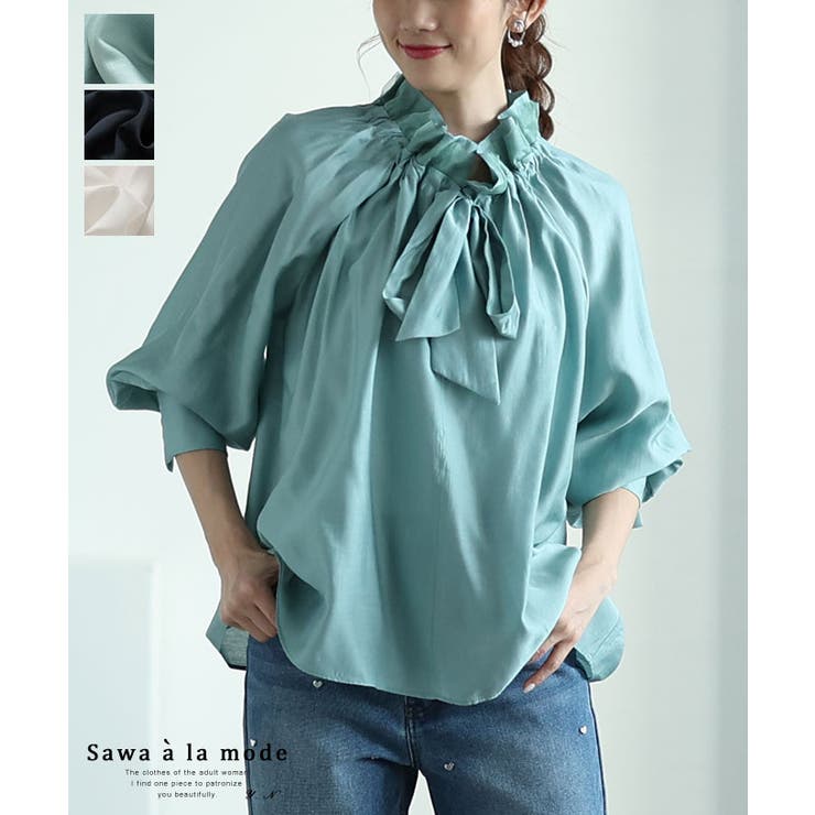 存在感のあるボウタイリボンのブラウス。 ボウタイがコーデを華やにする、大人可愛いアイテムです。 【ポイント】・ボリューム感あるボウタイリボンがおしゃれ!・お好みの結び方で楽しめるのも、嬉しいポイント。 ・袖ぐりのギャザーデザインで、ボリューム感が出て女性らしい印象に◎・ジレやニットカーデなどとのレイヤードスタイルで、リボンをチラ見せするのもオススメです。 【素材】さらり滑らかな肌心地のジョーゼット素材は大人女子に◎ほのかな光沢感があり、きちんと見せが叶います!………………………………………透け感:淡色の場合透け感あり厚さ:薄い伸縮性:なし裏地:なし………………………………………●MODEL:ティファニー 春香 身長163cm Mサイズ着用毛利愛美 身長163cm Mサイズ着用團 遥香 身長162cm Mサイズ着用※ご覧のモニター環境により画像の色味と多少異なる場合がございます。 ※撮影照明の関係により実際の色味と異なって見える場合がございます。 予め、ご了承ください。 ■ 品質/ポリエステル100%※ リボン取り外し不可※ 生地の特性上透けますので、インナーのご着用をお勧めします。 -----------------------------------------------------------------------------------------※サイズ寸法は実際の寸法と多少の誤差がある場合がございます。 ※ご覧いただいているPC/WEB環境や撮影環境により、 多少色味が異なって見える場合がございます。 【お買物をよりお楽しみいただく為に】▼商品のお気に入り登録をおすすめします♪『?をクリック!』完売カラーの再入荷などの通知を受ける事ができます。 ブランドのお気に入り登録もご一緒にお願いいたします。 ------------------------------------------------------------------------------------------------------------------------------------------------------------------------------------------------------------大人フェミニン オフィスカジュアル 体型カバー 大きいサイズニット セーター あったかアイテム 20代 30代 40代-------------------------------------------------------------------------------------------------------------------返品・交換について購入後の交換は受け付けておりません。 予めご了承ください。 返品を希望される場合は購入履歴一覧の「ショップへの問い合わせ」よりお問い合わせください。 =========================複数配送先指定について1件の注文に対して、異なる住所への配送は対応出来かねます。 恐れ入りますが、異なる住所へ配送をご希望の場合、配送先毎に分けて注文いただきますようお願い申し上げます。 【トップスWOMEN】オフホワイト ベージュ ピンク ネイビー スモーキーブルー ライトグレー LL 3L M L 【10%OFFクーポン!2/10(火)1:59まで】alotta ボウタイデザインブラウス トップス 3,256 ~