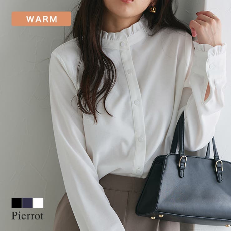 フェミニンな印象に導く“裏微起毛フリルネックブラウス”程良い厚みと上品な風合いがきれい見えを叶えます。 内側には起毛加工を施し着用時のひんやり感を軽減。 微起毛ながらもシルエットに響くことなく、普段使いしやすい素材です。 ネックや袖口にフリルを施し、スタイリングに程よいアクセントをプラスし、フェミニンな雰囲気漂う一枚に仕上げました。 シンプルなディテールでON/OFF問わず着用していただけます〇※商品画像は着用イメージです。 光や角度により、実物と色味が異なる場合がございます。 また表示のサイズ感も実物とは若干異なる場合もございますので、予めご了承ください。 【お買い物を楽しむための方法】**商品のお気に入り登録**カートボタン横のハートをクリック!気になるアイテムがお得になると通知が届きます。 チャンスをのがしません♪**ブランドのお気に入り登録**ブランドトップページの「お気に入りに追加」をクリック!新商品の情報を受け取ることができます。 【ブランド】Pierrot【スペック】■実寸(約cm)M:身丈58cm|肩幅35cm|バスト48cm|袖丈59cm|袖口幅11cm|脇口幅20.5cm|裾幅52cm|L:身丈60cm|肩幅37cm|バスト50cm|袖丈59cm|袖口幅11cm|脇口幅21.5cm|裾幅54cm|※実寸(平置きした状態でメジャー計測)の為、タグ表記のサイズとは異なります。 ■素材ポリエステル98%/ポリウレタン2%■洗濯表示液温は40℃を限度とし、手洗いができる塩素系及び酸素系漂白剤の使用禁止タンブル乾燥禁止底面温度110℃を限度としてアイロン仕上げができる(あて布使用)石油系溶剤による弱いドライクリーニングができる弱い操作によるウェットクリーニングができる■備考透け感(淡色):あり透け感(濃色):なし伸縮性:あり裏地:なしポケット:なしファスナー:なしオフホワイトに透け感が生じます。 ■ご注意・生地のカッティングにより画像と異なる場合がございます。 同商品、同色におきましても色(染料)やロットによって伸縮性・伸び率、裁断上ずれなどが生じてしまう現象があります。 また、プリント加工の際に、インク飛びが目立ってしまう場合がございますが、手法上致し方ない現象となりますので、なにとぞご了承くださいませ。 ・同生産時期でも、色、サイズ、デザイン、素材の質感が多少異なる場合がございます。 サイズ詳細などの測り方はスタッフ間で統一、徹底はしておりますが、若干の誤差(約2〜3cm誤差)がある場合がございます。 また、ニット製品は生産の過程上「生地を織る際の糸の継ぎ目」繊維の「混紡」、プレス加工、製品洗い加工によって形やサイズ(5cm前後)に誤差が生じる場合がございますが品質上の問題はございません。 返品・交換について購入後の交換は受け付けておりません。 予めご了承ください。 返品を希望される場合は購入履歴一覧の「ショップへの問い合わせ」よりお問い合わせください。 =========================複数配送先指定について1件の注文に対して、異なる住所への配送は対応出来かねます。 恐れ入りますが、異なる住所へ配送をご希望の場合、配送先毎に分けて注文いただきますようお願い申し上げます。 【トップスWOMEN】ブラック ネイビー グレージュ オフホワイト M Lブラック ネイビー グレージュ オフホワイト 【10%OFFクーポン!2/10(火)1:59まで】Pierrot 裏微起毛フリルネックブラウス ☆ ブラウス 裏起毛 フリルネック 袖フリル 微起毛 フェミニン シンプル ピエロ トップス 3,391 ~