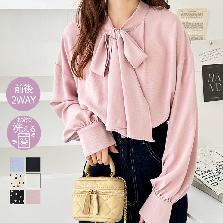 色々なボトムに合わせやすいきれいめブラウス♪前後2WAYで楽しめるボウタイブラウス〇前後2WAY〇絶妙なシルエットが大人可愛い〇ボウタイデザインがフェミニンさをプラス〇落ち感のあるキレイめ素材〇くるみボタンがさりげなく可愛いアクセント■デザインボウタイデザインが目を惹くブラウス。 前後2WAY仕様なので、雰囲気を変えたスタイルも。 シンプルで着回しが利くオフホワイト・ブラック・ブルーの3色とドット柄をプラスした5色展開。 落ち感のある素材で、シーンを選ばずに着られます。 ■素材落ち感のあるキレイめな素材……………………透け感:ややあり厚さ:普通伸縮性:なし裏地:なし洗濯方法:洗濯機……………………■コーディネートオンでもオフでも活躍する優秀アイテム♪ニットやジャンパースカートと合わせるキレイめスタイルはもちろん、デニムと合わせてカジュアルスタイルも!■ 品質/(オフホワイト/ブラック/ブルー/ピンクベージュ/ベージュ)ポリエステル100%(アイボリー系ドット/ブラック系ドット)ポリエステル95%、ポリウレタン5%※生産時期により色・素材などが多少異なる場合がございます。 予めご了承ください。 ■ サイズ(cm)/約M:バスト114、肩幅55、後着丈63、袖丈52.5L:バスト119、肩幅56、後着丈63、袖丈53●前後2WAY※ ドロップショルダーデザインです。 ※ 商品によって、柄の出方の異なる場合がございます。 (ドット柄)■ 取扱い/洗濯機-----------------------------------------------------------------------------------------※サイズ寸法は実際の寸法と多少の誤差がある場合がございます。 ※ご覧いただいているPC/WEB環境や撮影環境により、 多少色味が異なって見える場合がございます。 【お買物をよりお楽しみいただく為に】▼商品のお気に入り登録をおすすめします♪『?をクリック!』完売カラーの再入荷などの通知を受ける事ができます。 ブランドのお気に入り登録もご一緒にお願いいたします。 -----------------------------------------------------------------------------------------返品・交換について購入後の交換は受け付けておりません。 予めご了承ください。 返品を希望される場合は購入履歴一覧の「ショップへの問い合わせ」よりお問い合わせください。 =========================複数配送先指定について1件の注文に対して、異なる住所への配送は対応出来かねます。 恐れ入りますが、異なる住所へ配送をご希望の場合、配送先毎に分けて注文いただきますようお願い申し上げます。 【トップスWOMEN】ホワイト ブラック ブルー アイボリー系ドット ブラック系ドット ピンクベージュ ベージュ M L LL Sホワイト ブラック ブルー アイボリー系ドット ブラック系ドット ピンクベージュ 【10%OFFクーポン!2/10(火)1:59まで】GeeRA 前後2wayボウタイブラウス トップス 2,999 ~