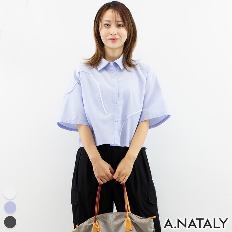 今季トレンドのコード刺繍デザインをあしらったシャツ短い丈にコード刺繍デザインとトレンド満載の半袖シャツ。 ハイウエスト丈のボトムとの相性◎カジュアルなお出かけにピッタリなアイテムです!※撮影場所やイメージにより実際の商品と色味が異なる事がございます。 【カラー】 オフ/ブルー/ブラック【サイズ】 Fサイズ ・身丈 : 49cm ・肩幅 : 50cm ・身幅 : 55cm ・裾幅 : 56.5cm ・袖丈 : 24.5cm ・袖口幅 : 21cm【素材】 ・ポリエステル 98% ・コットン 2%【備考】 ・伸縮性なし ・透け感ややあり ・裏地なし春/夏/晩夏/着まわし/万能/デイリー/クロップド/パイピング/着心地/快適/楽チン/カジュアル/使いやすい/トップス/半袖/合わせやすい/活躍/オフィスカジュアル/大人可愛い/可愛い/通学/通勤/上品/綺麗目/カラー/開襟シャツ/返品・交換について購入後の交換は受け付けておりません。 予めご了承ください。 返品を希望される場合は購入履歴一覧の「ショップへの問い合わせ」よりお問い合わせください。 =========================複数配送先指定について1件の注文に対して、異なる住所への配送は対応出来かねます。 恐れ入りますが、異なる住所へ配送をご希望の場合、配送先毎に分けて注文いただきますようお願い申し上げます。 【トップスWOMEN】オフ ブルー ブラック Fオフ ブルー ブラック 【10%OFFクーポン!3/26(木)1:59まで】A.NATALY ブロードパイピング半袖ショートシャツ トップス 4,425 ~