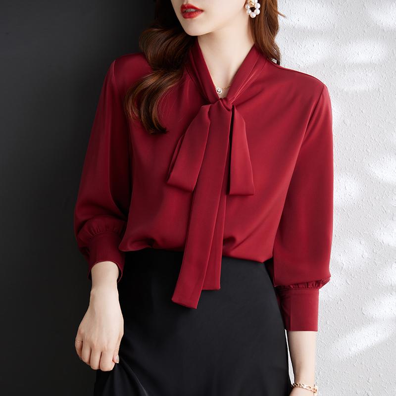 秋服 レディース ファッション オシャレ カワイイ シンプル 大人カワイイ 大きいサイズ 赤 シフォン シャツ トップス 長袖 11,263 ~