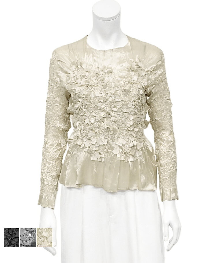 ギフト対応の詳細はこちら 長袖ブラウス SIZE 重さ Free(3?19号) 78g 平置き寸法 バスト 肩幅 袖丈 着丈 - 80cm 31cm 52cm 52cm 着用寸法 バスト(対応サイズ) 肩幅 袖丈 着丈 9号トルソー 74?100cm 41cm 54cm 55cm ※若干の誤差はご了承ください。 ブランド名 SPECCHIO PLEATS MADE IN 中国 COLOR ・ブラック・グレー・ベージュ MATERIAL ポリエステル 100% お手入れ:ドライクリーニング / 手洗い可手洗い方法はこちら>> 商品の特徴 ・人気のGプリーツシリーズにラウンドネック×長袖が登場!特別な日の装いを想定した日常的でありながらエレガンスに纏えるブラウス ・フィット感がありながらも体のライン(たるみ)を拾いすぎない程良いタイトシルエットが、女性らしい雰囲気を演出 ・日常でのドレスアップに、オフィスはもちろん、フォーマルや卒入学、結婚式、会食、旅行等幅広いシーンにも最適です ・前身頃、後身頃、袖:Gプリーツ加工 ・裾:ヒダプリーツ加工 ・前身頃:スパンコール、ビーズ&モチーフ刺繍加工 ・ラウンドネック ・長袖 ・後ボタン留め ・裏地無 (アウター、ボトムス、アクセサリー等は別売りとなっております) ★Gプリーツとは 糸で生地にランダム刺繍をし、その糸をギュッと縮めた状態で熱加工を施したプリーツ加工の名称です。 縦、横、斜め、全方位に自在に伸縮します。 ご注意ください! ※商品にご注意!当社の商品は100% SPECCHIOプロデュースの【シャトルプリーツ】正規商品でございます。 「粗悪な類似品」には十分ご注意くださいませ。 ※タイトル又は商品説明に記載のない衣類、小物などは付属しておりません ※お使いのモニター環境等によって素材感や色の見え方に違いがある場合がございます-Coordinate Item- ・着用のスカートはこちら>> スペッチオ プリーツ ブラウス レディース 長袖 シャツ 【SPECCHIO 公式店】フォーマル ビジネス オフィス 卒業式 入学式 きれいめ 春 秋 冬 3-19号 S/M/L/XL 大人 大きいサイズ ジャケットインナー ミセス 40代 50代 60代 ドレス 16,500 ~