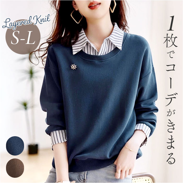 ニット シャツ ブラウス レディース 好評 レイヤードニット シャツブラウス カジュアルシャツ カジュアルブラウス レディースシャツ レディースブラウス レイヤード トップス 長袖 襟付き 体型カバー カジュアル オフィス 女性用 レディースファッション 3,610 ~