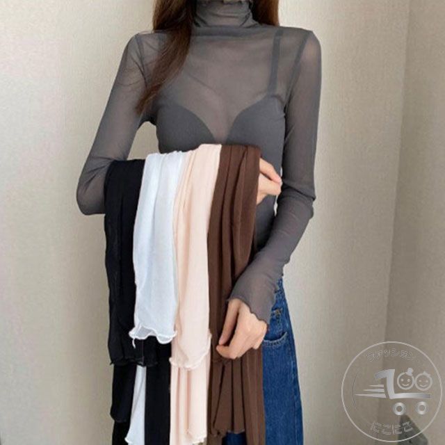 新生活 肌見せ トップス 大きいサイズ 紫外線対策 ハイネック 長袖 レディース シースルー シアー 接触冷感 UV対策 クール冷感 シアートップス UVカット トップス 冷房対策 レイヤード インナー 薄手 セクシー きれいめ ミセス 4,360 ~