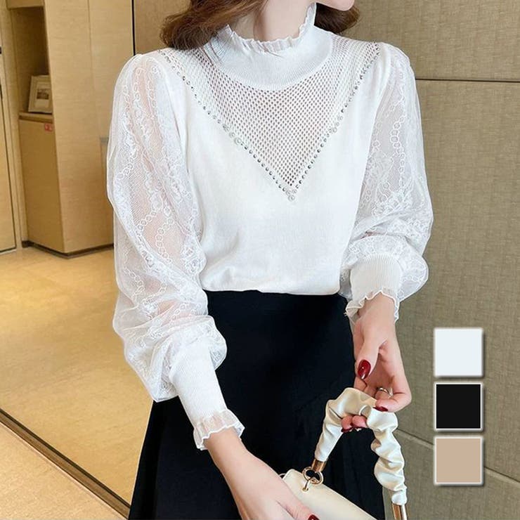 ■POINT・袖のレースが上品で可愛い。 フェミニンな雰囲気が魅力的なブラウス。 そのままシンプルに着こなしも◎レイヤーしても◎。 ・デコルテのビジューで華やかさも。 V字ラインがシャープな印象に、切り換えデザインも個性的で、女性らしさをいっそに引き立てる一枚。 ・控えめなフリルが女性らしい一枚。 定番のワイドパンツやプリーツスカートを合わせて、王道のフェミニンなスタイルも楽しめる。 ■DETAIL(約cm)[F]着丈:56cm 身幅:46cm ゆき丈:73.5cm 肩幅:35cm 袖丈:56cm生地の厚み:若干薄い透け感:あり裏地:なし伸縮性:ありポケット:なし素材:ポリエステル80%レーヨン20%原産国:中国■CHECK※生産時期により、レースの柄が異なる場合がございます。 マネキンの横向き画像をご参照ください。 ※スタッフが実際に平置きにて採寸したものですので若干の誤差がある場合がございます。 ※お使いのモニターや端末により、質感色合いが実際の商品と異なって見える場合がございます。 ※生産時期により仕様・色味が異なる場合があります。 返品・交換について購入後の交換は受け付けておりません。 予めご了承ください。 返品を希望される場合は購入履歴一覧の「ショップへの問い合わせ」よりお問い合わせください。 =========================複数配送先指定について1件の注文に対して、異なる住所への配送は対応出来かねます。 恐れ入りますが、異なる住所へ配送をご希望の場合、配送先毎に分けて注文いただきますようお願い申し上げます。 【トップスWOMEN】ブラック ベージュ ホワイト F 【10%OFFクーポン!2/10(火)1:59まで】Amulet レーススリーブブラウス レディース 10代 20代 30代 韓国ファッション 春 秋 カジュアル 長袖 シンプル おしゃれ 可愛い 白 黒 上品 トップス 2,175 ~
