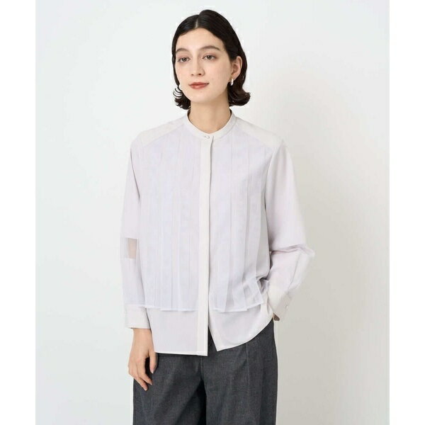 [型番:PHBJB46290][ジョルジュ・レッシュ 小さいサイズ]チュール×シャツ地の異素材コンビで周りと差がつくデザインブラウス■デザイン同色系のチュールとシャツ地をレイヤードした一枚で着映えるブラウスです。 バンドカラーと袖口にパール調釦を施し、エレガントで上品なデザインに仕上げました。 一枚着としてもボタンを開けて羽織としても着用可能で、着こなしの幅が広がります。 袖口にはシアー見えする箇所を作り、抜け感を演出。 素肌を見せてもインナーに長袖を重ねても軽やかな印象になります。 ちょっとしたお出かけやオケージョン使いにも馴染み、デイリー使いもできる万能なアイテムです■素材・リサイクルポリエステルを100%使用した環境配慮型素材です。 ・非常に細番手の糸を高密度に織ることで優しい風合いを活かしながらシワになりにくくサラッとした肌触りを表現しています。 ・洗濯後に乾きやすくお手入れがしやすいのも嬉しいポイントです。 ■おすすめのコーディネート デザイン性のあるアイテムなので、シンプルなボトムスと合わせたコーディネートもおすすめです。 デニムなどカジュアルなアイテムと合わせてもバランス良く着こなしていただけます。 ーーーーーーーーーーーーーーーーーーーーーー透け感:袖チュール部分あり裏地:なし伸縮性:なし光沢感:なし生地の厚さ:やや薄手ケア方法:手洗いーーーーーーーーーーーーーーーーーーーーーー着用シーズン春:〇 夏:× 秋:◎ 冬:△ーーーーーーーーーーーーーーーーーーーーーーmodel:H156 B75 W59 H85 着用サイズ:S■展開サイズ:S(36)※自然光・照明の関係、パソコン・スマートフォンなどの環境により、実際と色味が違って見える場合がございます。 予めご了承ください。 商品の色味は、詳細画像をご参照ください。 ■カラー:ライトグレー、ブラックS:着丈64 肩幅39 身幅48.7 袖丈48.5 裄丈68 袖幅38.9 袖口幅21 裾周り115 重量(g)185※( )で表記されている数字はヌードサイズです。 ヌードサイズとは衣服を身につけない身体のサイズです。 お客様ご自身の身体サイズと比較してお選びください。 ■素材: ライトグレー/ブラック:本体部分 ポリエステル 100% チュール部分 ポリエステル 100% ■お手入: >>商品のお取り扱い方法 ■原産国: 中国シアーチュールレイヤードブラウス/ジョルジュ・レッシュ(GEORGES RECH)ライトグレーブラック画面上と実物では、多少色具合が異なって見える場合がございます。