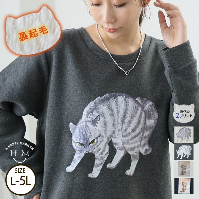 【期間限定クーポン配布】 大きいサイズ レディース トップス | ネコ 裏起毛 プルオーバー オノマイ Ono Mai トレーナー スウェット やんのかネコ しがみつきネコ _ LL 3L 4L 5L 長袖 冬 冬物 冬服 ぽっちゃり ゆったり プラスサイズ かわいい [647795/647798] 2,288 ~