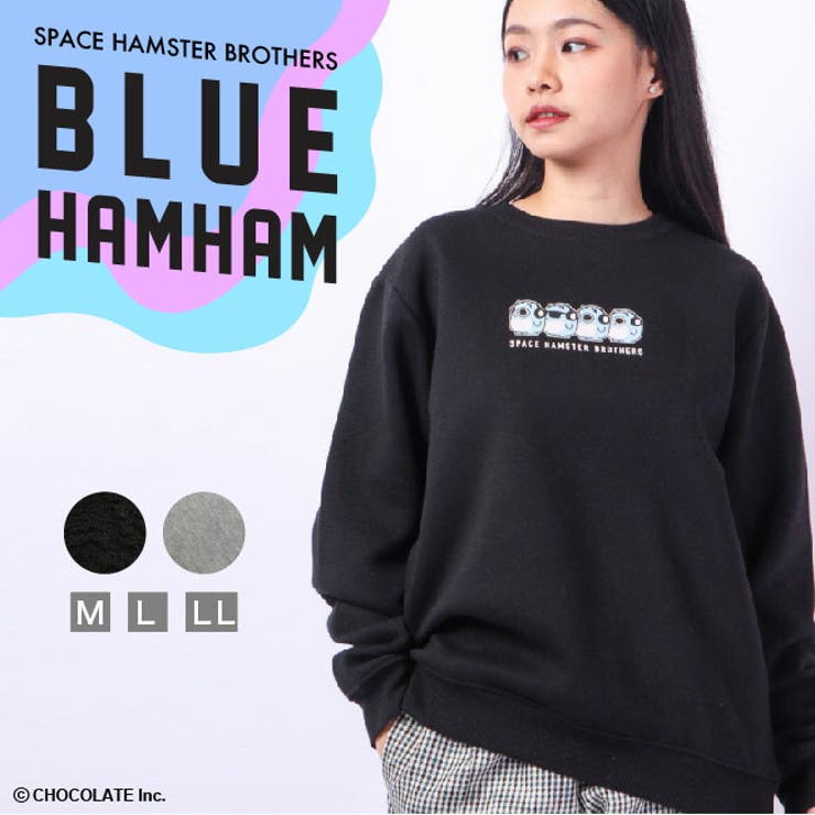 【10%OFFクーポン!2/10(火)1:59まで】CharaBasket ブルーハムハム トレーナー 長袖 スウェット プリント SNS ハムスター 裏起毛 M L LL トップス 2,475 ~
