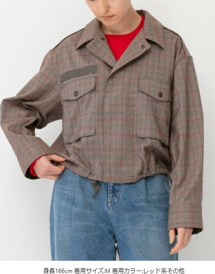マルチチェックの千鳥柄を使用したブルゾン。 ミリタリーディティールをデザインに落とし込み、バランスのとりやすいショート丈に仕上げています。 前立てのスナップボタンを1つ外してテーラードジャケットのようにも着用できたり、裾のテープを絞って丸みのあるシルエットも楽しめます。 ■ポイント ・スタイリングに取り入れやすいコンパクトな着丈 ・シルエットの変化を楽しめるデザイン ・一枚でさまになるデザイン 洗濯:手洗い可、ドライクリーニング ※洗濯の際は中性洗剤をご使用ください。 サイズ詳細 サイズMEDIUM 着丈52cm 肩幅52.5cm そで丈53.5cm 身幅59cm 素材 ポリエステル90% レーヨン8% ポリウレタン2% 原産国 中国 ●Johnbull 【ジョンブル】 チェックミリタリーブルゾン JL243L08 24,750 ~
