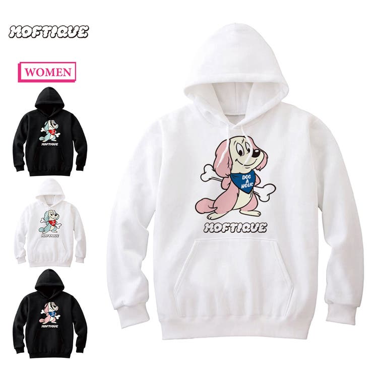 【10%OFFクーポン!2/10(火)1:59まで】printrium Moftique(モフティック) プルパーカー レディース スウェット アニマル 犬 ドッグ イラスト ロゴ プリント プルオーバーパーカー フーディー スエット トップス ユニセッ 3,982 ~