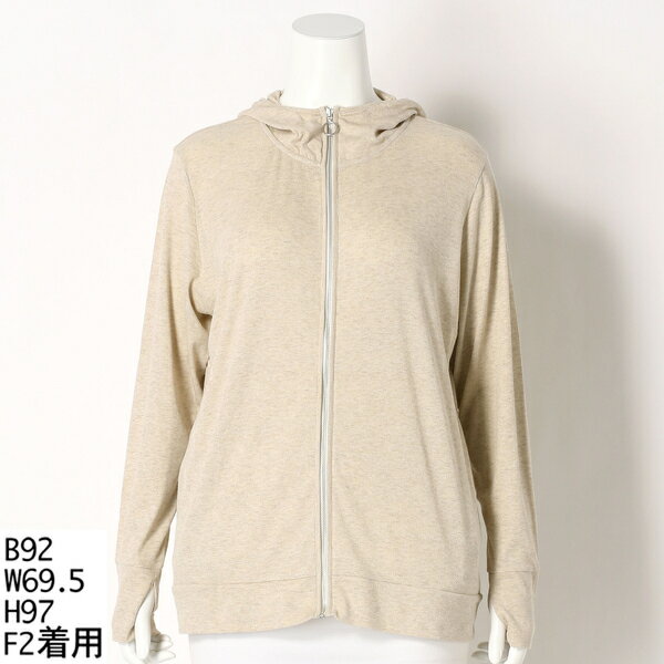 [型番:6233]軽くて滑らかな肌ざわりの薄手のジップパーカーです。 優しい色合いに上品なラメが明るさをプラスします。 日よけにも使える親指穴付きです。 春から夏まで大活躍の一枚です。 ■カラー:ベージュ、サックス、グリーン、ネイビーサイズバスト着丈肩幅二の腕幅袖丈袖口幅裾幅F2110.065.538.021.058.09.055.0F3120.067.041.023.058.010.061.0F4128.068.041.023.059.011.067.0F5140.068.044.024.060.012.571.5※( )で表記されている数字はヌードサイズです。 ヌードサイズとは衣服を身につけない身体のサイズです。 お客様ご自身の身体サイズと比較してお選びください。 ■素材: レーヨン(モダール)71% ナイロン13% ポリエステル13% ポリウレタン3% ■お手入: 手洗い・ドライ >>商品のお取り扱い方法 ■原産国: 日本製【大きいサイズ レディース】ラメストレッチリブ指穴付きジップパーカー/クインティ(QUINTY)ベージュサックスグリーンネイビー画面上と実物では、多少色具合が異なって見える場合がございます。