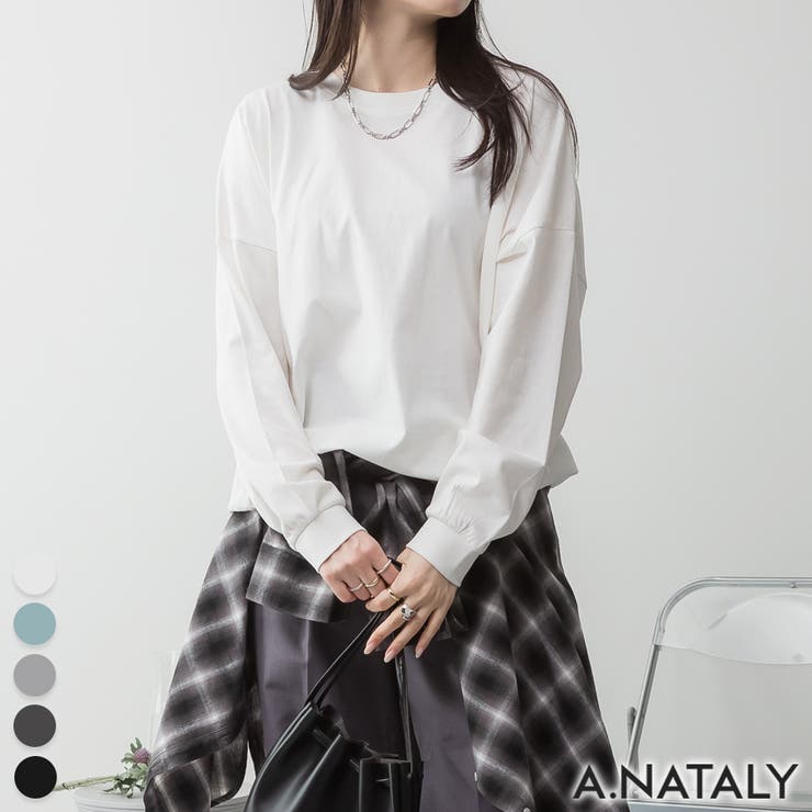 【10%OFFクーポン!2/10(火)1:59まで】A.NATALY コットンゆったりロングスリーブカットソー トップス 2,538 ~