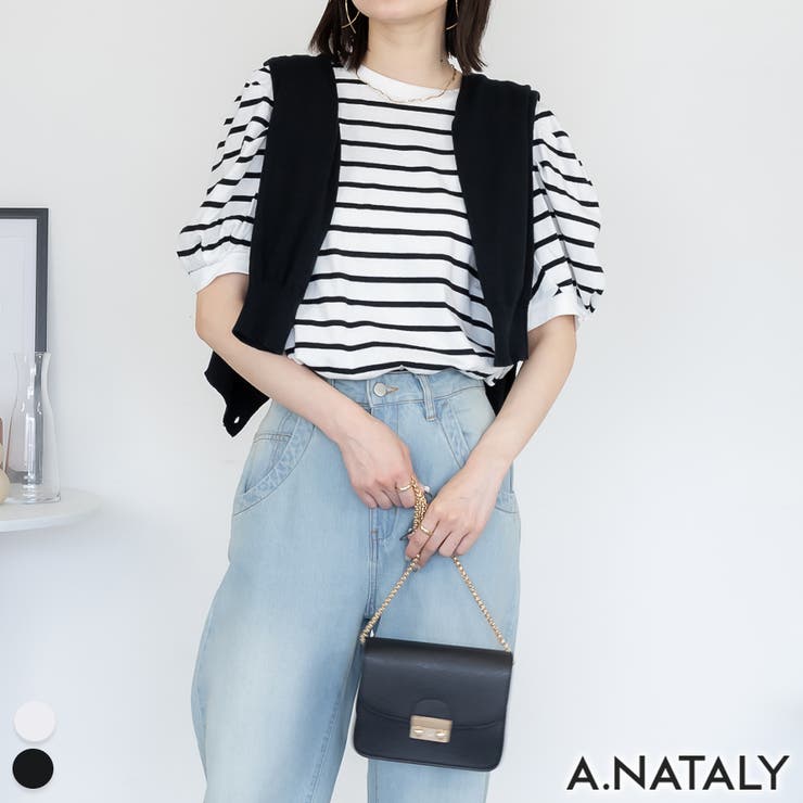 【10%OFFクーポン!2/10(火)1:59まで】A.NATALY ボーダーパフスリーブトップス トップス 1,849 ~
