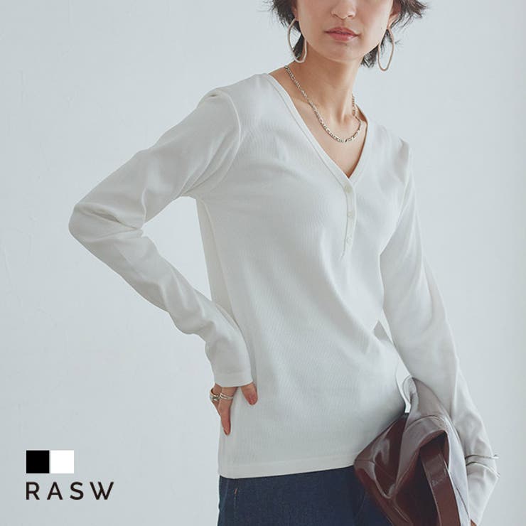 シルキーなタッチが着心地抜群のリブカットソー。 深めのVネックが女性らしく、ジャケットのインナーにも合わせやすいトップスです。 ※商品画像は着用イメージです。 光や角度により、実物と色味が異なる場合がございます。 また表示のサイズ感も実物とは若干異なる場合もございますので、予めご了承ください。 【お買い物を楽しむための方法】**商品のお気に入り登録**カートボタン横のハートをクリック!気になるアイテムがお得になると通知が届きます。 チャンスをのがしません♪**ブランドのお気に入り登録**ブランドトップページの「お気に入りに追加」をクリック!新商品の情報を受け取ることができます。 【ブランド】RASW(ラス)【スペック】■実寸(約cm)M:身丈62cm|肩幅35cm|バスト42cm|袖丈65.5cm|袖口幅9cm|脇口幅19cm|裾幅44cm|L:身丈64cm|肩幅37cm|バスト44cm|袖丈65.5cm|袖口幅9cm|脇口幅20cm|裾幅46cm|※実寸(平置きした状態でメジャー計測)の為、タグ表記のサイズとは異なります。 ■素材ポリエステル76%/綿21%/ポリウレタン3%■洗濯表示液温は40℃を限度とし、ネットを使用し洗濯機で弱い洗濯ができる塩素系及び酸素系漂白剤の使用禁止タンブル乾燥禁止日陰のつり干しがよい底面温度120℃を限度としてアイロン仕上げができる(あて布使用)ドライクリーニング禁止■備考透け感(淡色):あり透け感(濃色):なし伸縮性:あり裏地:なしポケット:なしファスナー:なし生地の特性上少し毛羽たちが生じます。 オフホワイトに透け感が生じます。 ■ご注意・生地のカッティングにより画像と異なる場合がございます。 同商品、同色におきましても色(染料)やロットによって伸縮性・伸び率、裁断上ずれなどが生じてしまう現象があります。 また、プリント加工の際に、インク飛びが目立ってしまう場合がございますが、手法上致し方ない現象となりますので、なにとぞご了承くださいませ。 ・同生産時期でも、色、サイズ、デザイン、素材の質感が多少異なる場合がございます。 サイズ詳細などの測り方はスタッフ間で統一、徹底はしておりますが、若干の誤差(約2?3cm誤差)がある場合がございます。 また、ニット製品は生産の過程上「生地を織る際の糸の継ぎ目」繊維の「混紡」、プレス加工、製品洗い加工によって形やサイズ(5cm前後)に誤差が生じる場合がございますが品質上の問題はございません。 返品・交換について購入後の交換は受け付けておりません。 予めご了承ください。 返品を希望される場合は購入履歴一覧の「ショップへの問い合わせ」よりお問い合わせください。 =========================複数配送先指定について1件の注文に対して、異なる住所への配送は対応出来かねます。 恐れ入りますが、異なる住所へ配送をご希望の場合、配送先毎に分けて注文いただきますようお願い申し上げます。 【トップスWOMEN】M L ブラック オフホワイトブラック オフホワイト Pierrot [RASW]ヘンリーネックテレコリブカットソー ☆ 着心地 Vネック 女性らしい インナー トレンドライク 袖 ボタン マーブル ピエロ トップス 3,990 ~
