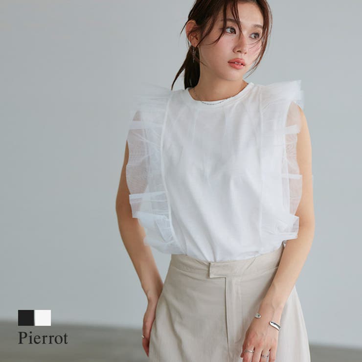 スタイリングを華やかにしてくれる“チュールフリルカットソー”柔らかく程良くハリ感のあるチュール素材がトレンドライクな印象。 インナーが付いており、サラッとした着心地の良い綿混素材です。 チュール使いが今年らしいデザインのカットソー。 前面に施したフリルがフェミニンなアクセントに。 アウトスタイルで透け感を見せたり、インスタイルですっきりと着こなしても◎ボトムスはカジュアルに外すのが今年らしくておすすめです。 ※商品画像は着用イメージです。 光や角度により、実物と色味が異なる場合がございます。 また表示のサイズ感も実物とは若干異なる場合もございますので、予めご了承ください。 【お買い物を楽しむための方法】**商品のお気に入り登録**カートボタン横のハートをクリック!気になるアイテムがお得になると通知が届きます。 チャンスをのがしません♪**ブランドのお気に入り登録**ブランドトップページの「お気に入りに追加」をクリック!新商品の情報を受け取ることができます。 【ブランド】Pierrot(ピエロ)【スペック】■サイズ M/L■実寸(約cm)【身丈/肩幅/バスト/脇口/裾幅】M:56/39.5/46/19/48L:58/41.5/48/20/50※実寸(平置きした状態でメジャー計測)の為、タグ表記のサイズとは異なります。 ■素材[本体]ポリエステル65%/綿35%[チュール]ナイロン100%■洗濯表示液温は40℃を限度とし、ネットを使用し洗濯機で弱い洗濯処理ができる塩素系及び酸素系漂白剤の使用禁止タンブル乾燥禁止日陰のつり干しがよい底面温度110℃を限度としてアイロン仕上げができる(あて布使用)ドライクリーニング禁止■備考透け感(淡色):あり透け感(濃色):なし伸縮性:あり裏地:なしポケット:なしファスナー:なしオフホワイトに透け感が生じます。 ■ご注意・生地のカッティングにより画像と異なる場合がございます。 同商品、同色におきましても色(染料)やロットによって伸縮性・伸び率、裁断上ずれなどが生じてしまう現象があります。 また、プリント加工の際に、インク飛びが目立ってしまう場合がございますが、手法上致し方ない現象となりますので、なにとぞご了承くださいませ。 ・同生産時期でも、色、サイズ、デザイン、素材の質感が多少異なる場合がございます。 サイズ詳細などの測り方はスタッフ間で統一、徹底はしておりますが、若干の誤差(約2〜3cm誤差)がある場合がございます。 また、ニット製品は生産の過程上「生地を織る際の糸の継ぎ目」繊維の「混紡」、プレス加工、製品洗い加工によって形やサイズ(5cm前後)に誤差が生じる場合がございますが品質上の問題はございません。 返品・交換について購入後の交換は受け付けておりません。 予めご了承ください。 返品を希望される場合は購入履歴一覧の「ショップへの問い合わせ」よりお問い合わせください。 =========================複数配送先指定について1件の注文に対して、異なる住所への配送は対応出来かねます。 恐れ入りますが、異なる住所へ配送をご希望の場合、配送先毎に分けて注文いただきますようお願い申し上げます。 【トップスWOMEN】ブラック オフホワイト M L 【20%OFF!2/5(木)限定】Pierrot チュールフリルカットソー ☆ カットソー チュール フリル フェミニン 透け感 インナー付き ハリ感 華やか 綿混素材 トレンド ピエロ トップス 3,140 ~